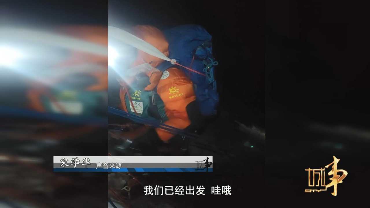 宋学华:他说我不需要,你帮我看看绳子有没有挂好,我们就看到他那个主锁挂在耳扣上,挂得很好,没有问题,然后他说我雪盲了,我看不见东西,我们就看他戴着雪镜,其实没有任何问题,当时应该发生了脑水肿,然后压迫视网膜神经,造成这种短暂性失明的情况。所以我们问他需要不要帮忙,他明确说不需要。