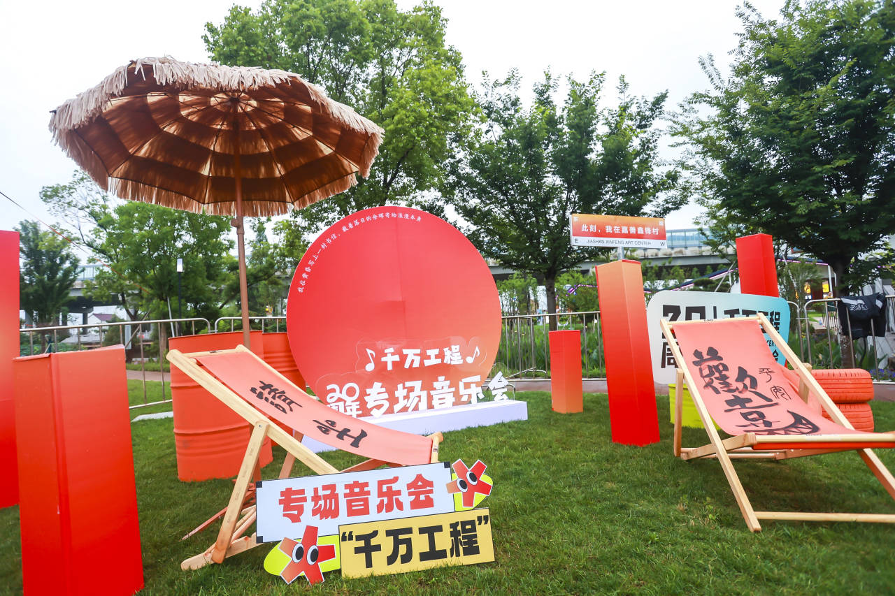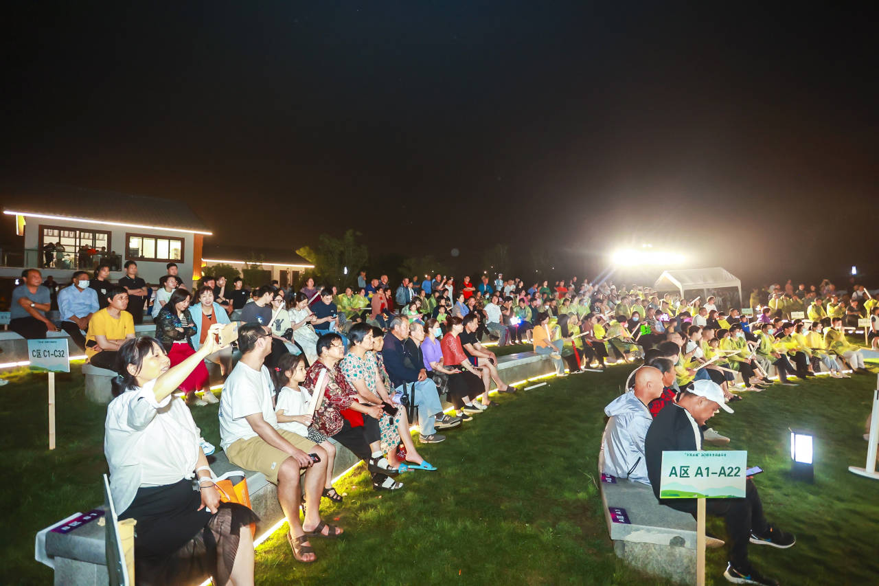 目光所及是“小桥流水人家”的江南美丽乡村,耳畔之音是淅淅沥沥的雨滴打落在青草地,与优美的音乐、欢快的歌声、热情的欢呼声合奏出的“交响曲”。今晚,嘉善县罗星街道葫芦蚂蚁鑫锋音乐村犹如夜幕中一颗璀璨明珠,吸引着无数人的目光,共享“千万工程”20周年专场音乐会盛宴,感受江南梅雨季特有的诗意与浪漫。