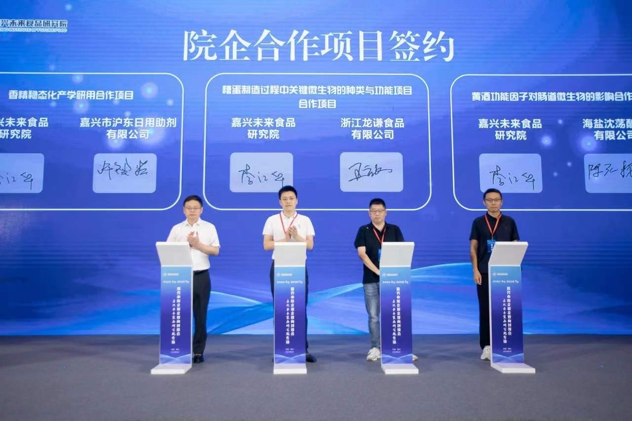 科研院所“有情”,企业主体“有意”,院企银企双向对接会嘉兴未来食品研究院专场活动应运而生。在6月底的这场活动上,研究院发布了“微生物发酵法生产中性乳糖酶”、“丙谷二肽的全细胞催化合成”等18项科技成果,本地9家企业和单位也在活动上与研究院签订合作协议,“联姻”成果显著。