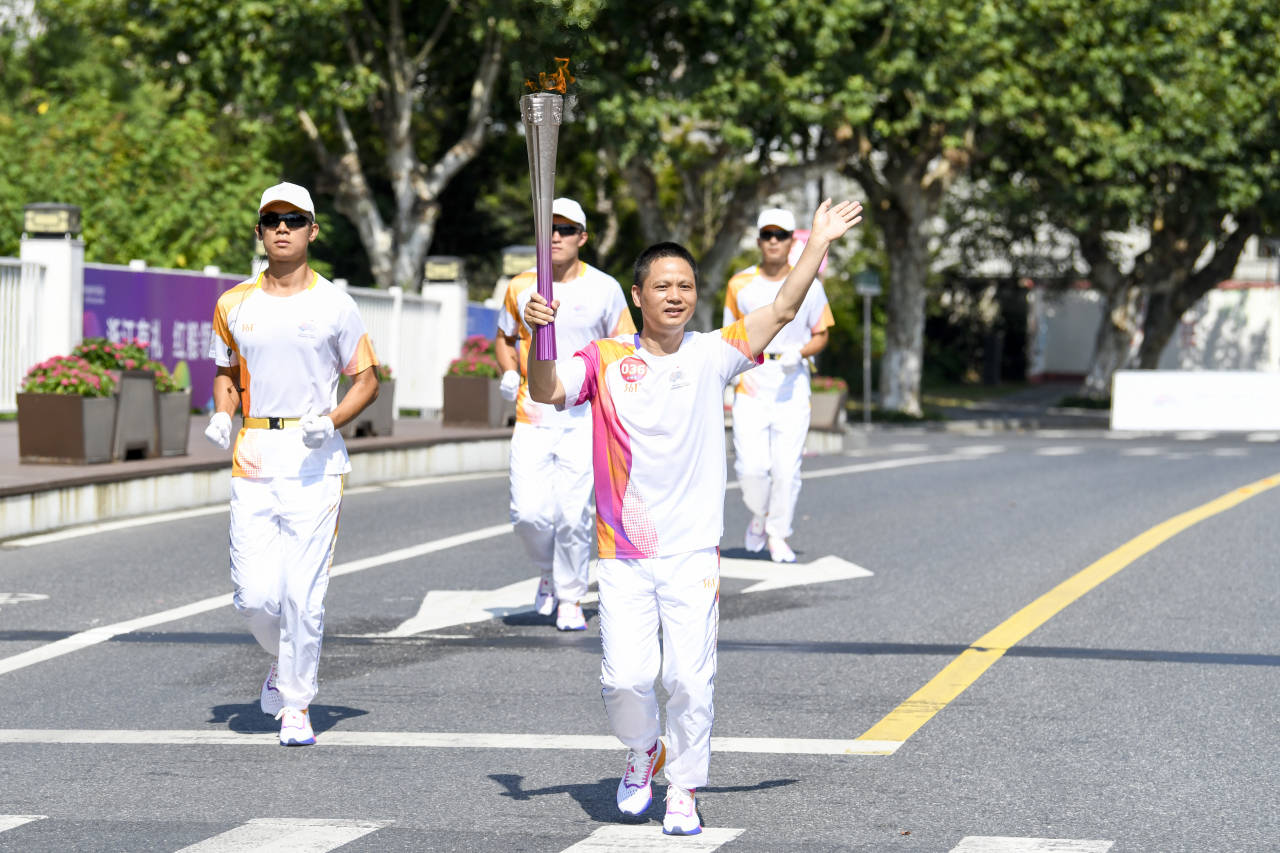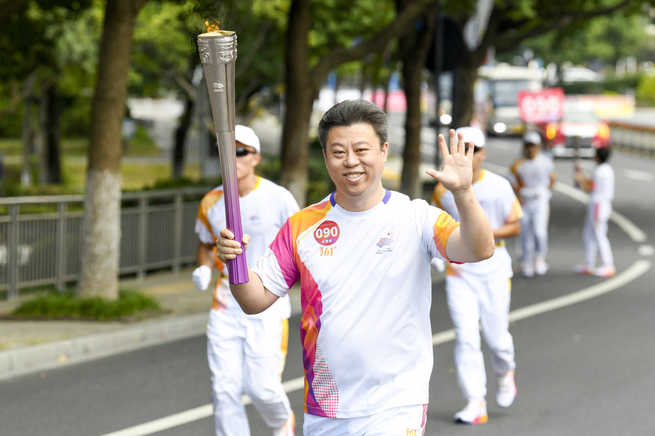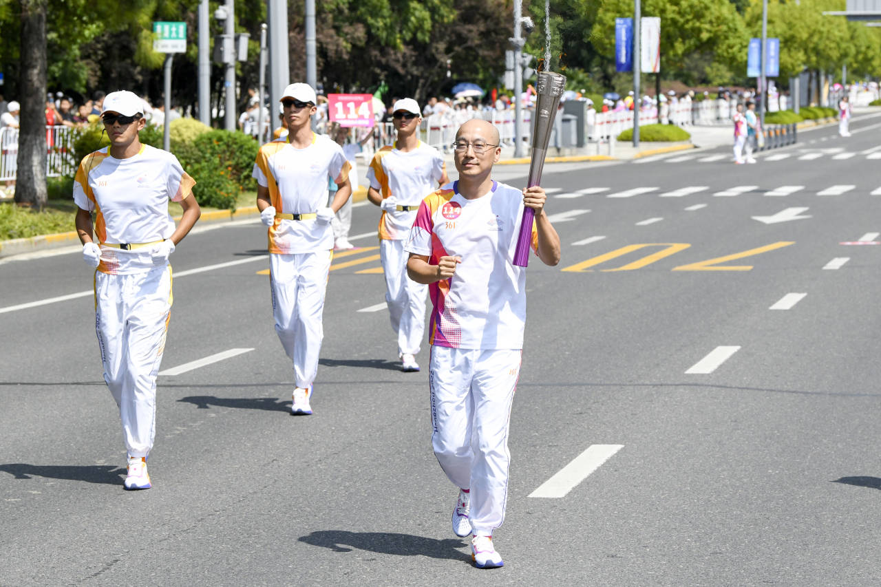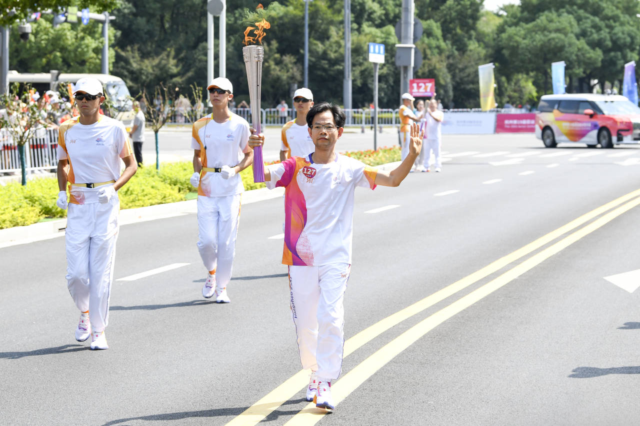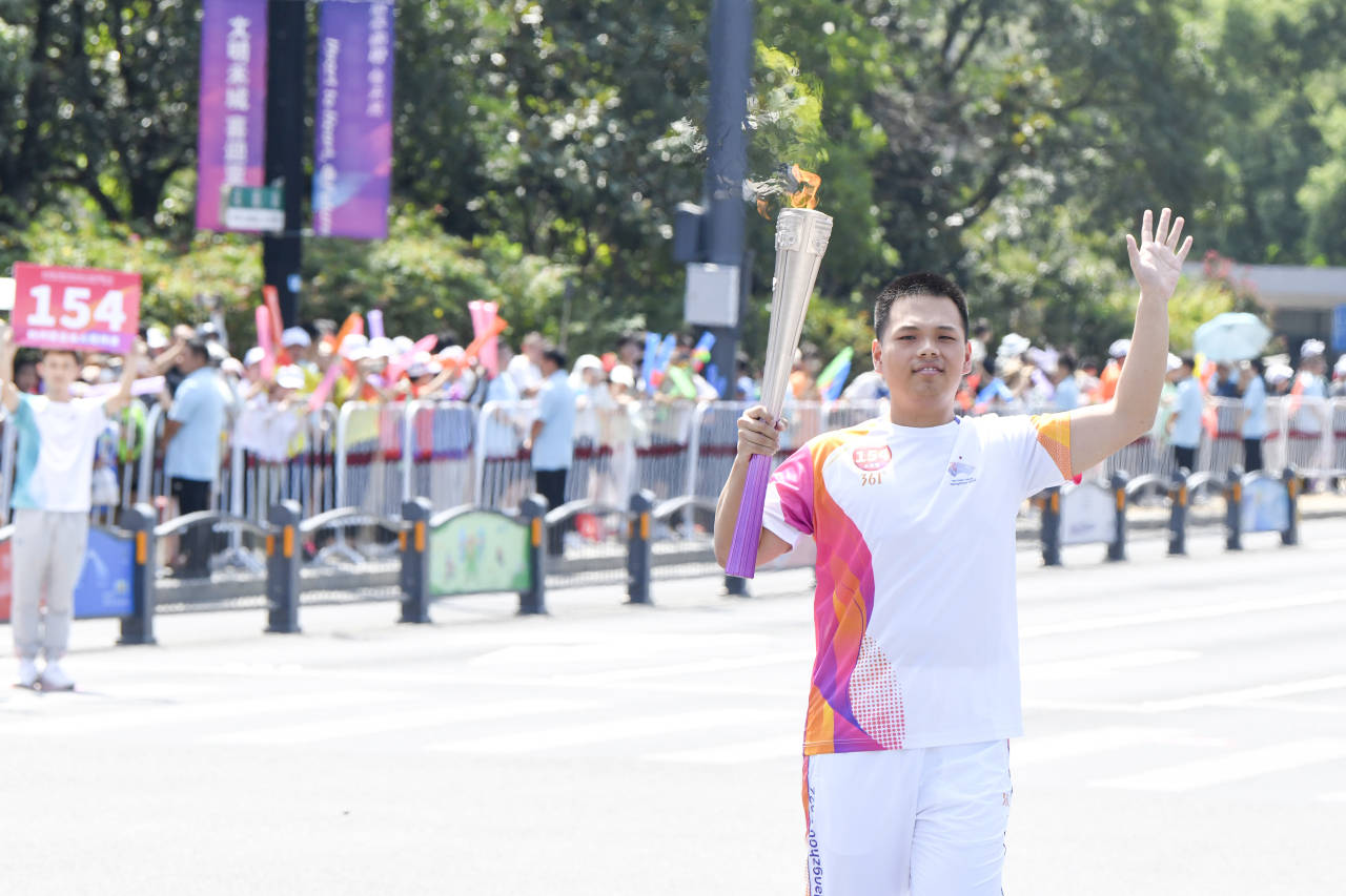 10号火炬手陈日,是中共浙江省委办公厅工作人员代表,他全力以赴做好亚运会、亚残运会前期接待工作,把每个细节做到最优。