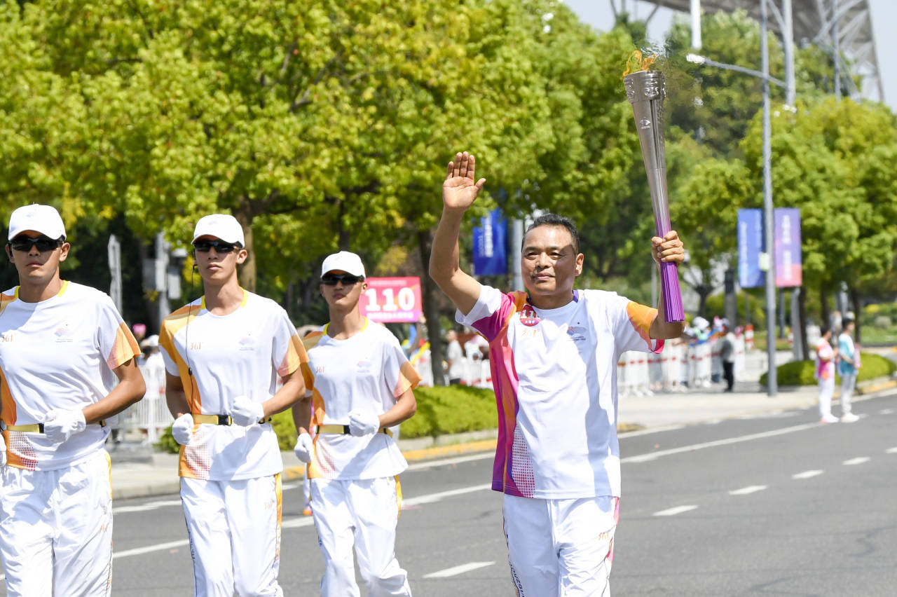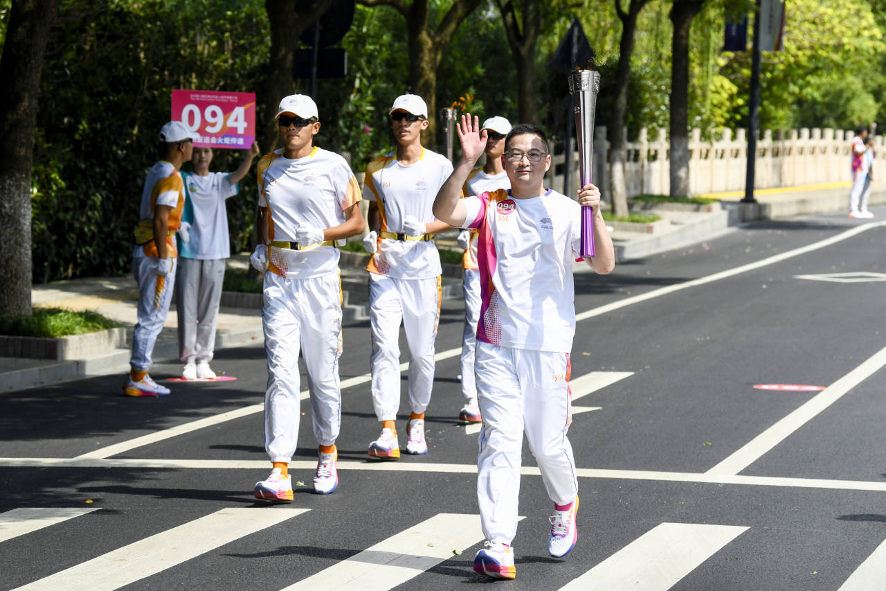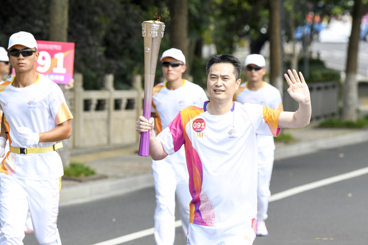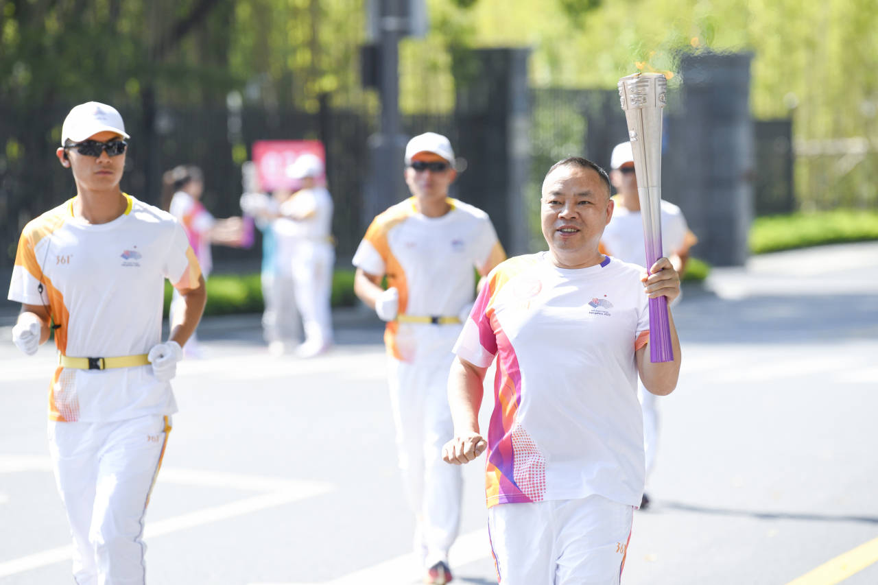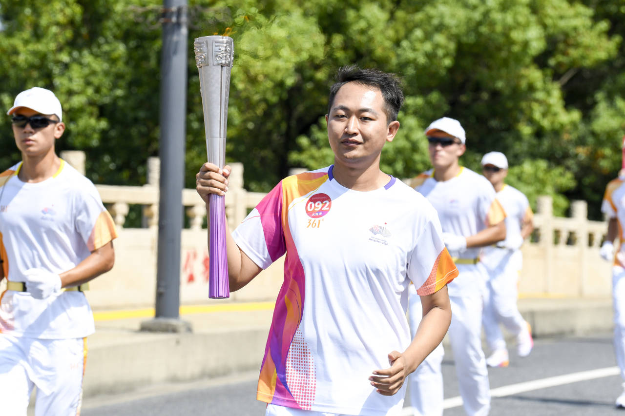 10号火炬手陈日,是中共浙江省委办公厅工作人员代表,他全力以赴做好亚运会、亚残运会前期接待工作,把每个细节做到最优。