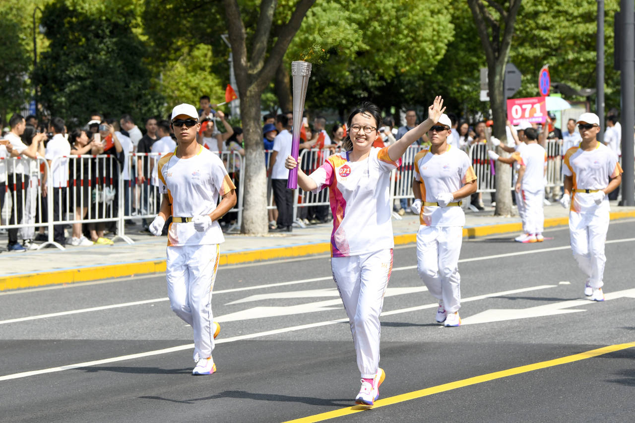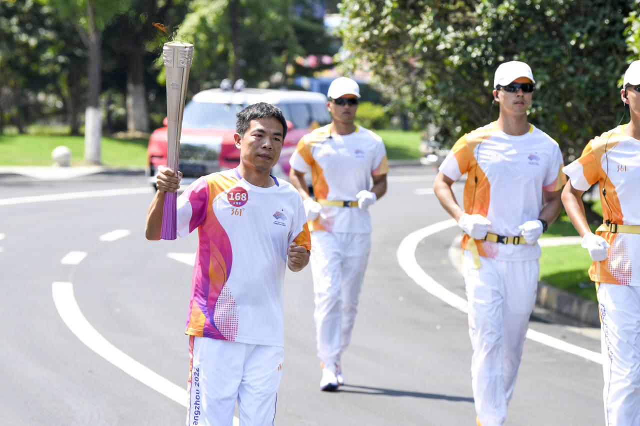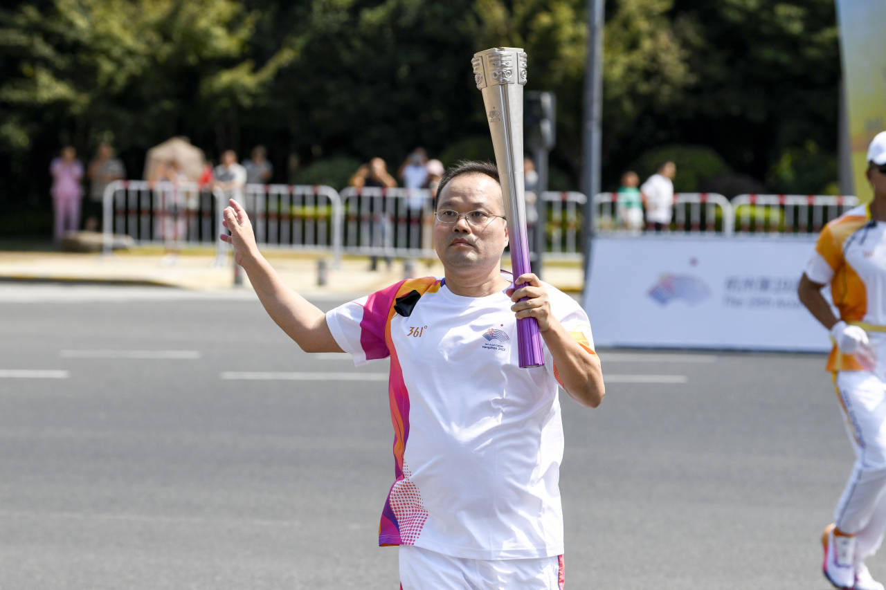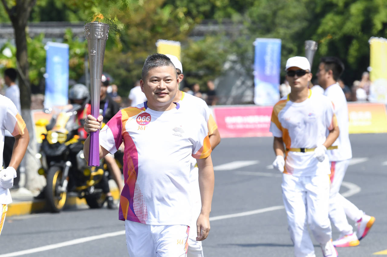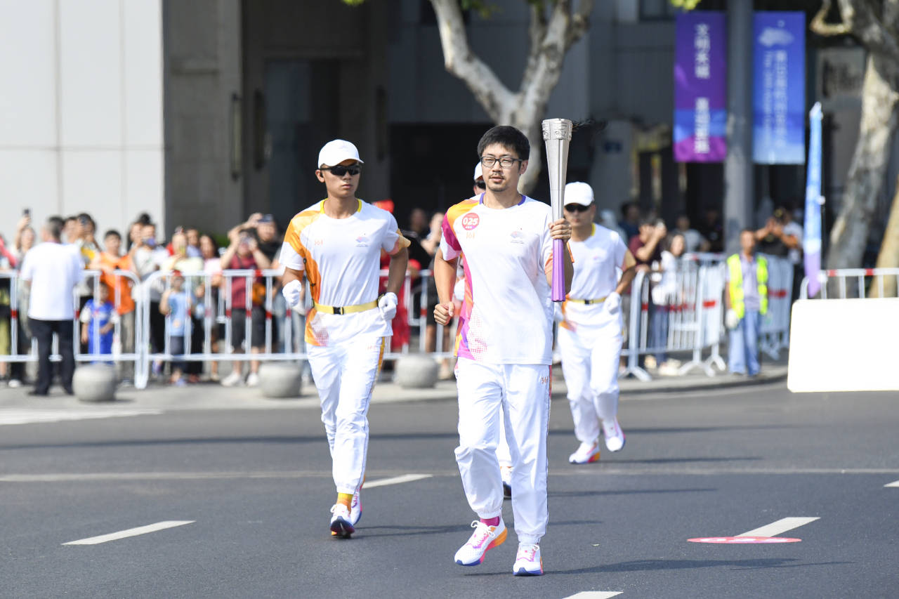 10号火炬手陈日,是中共浙江省委办公厅工作人员代表,他全力以赴做好亚运会、亚残运会前期接待工作,把每个细节做到最优。
