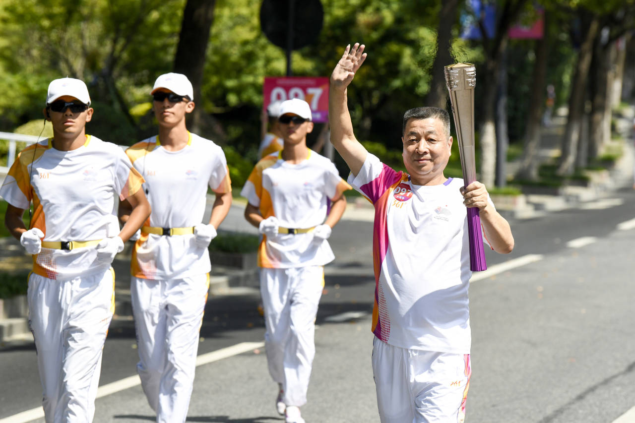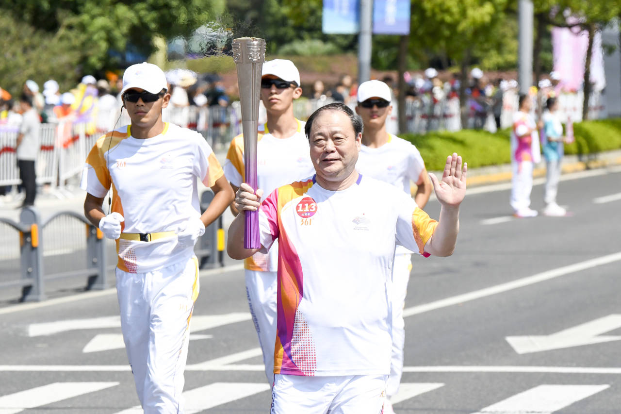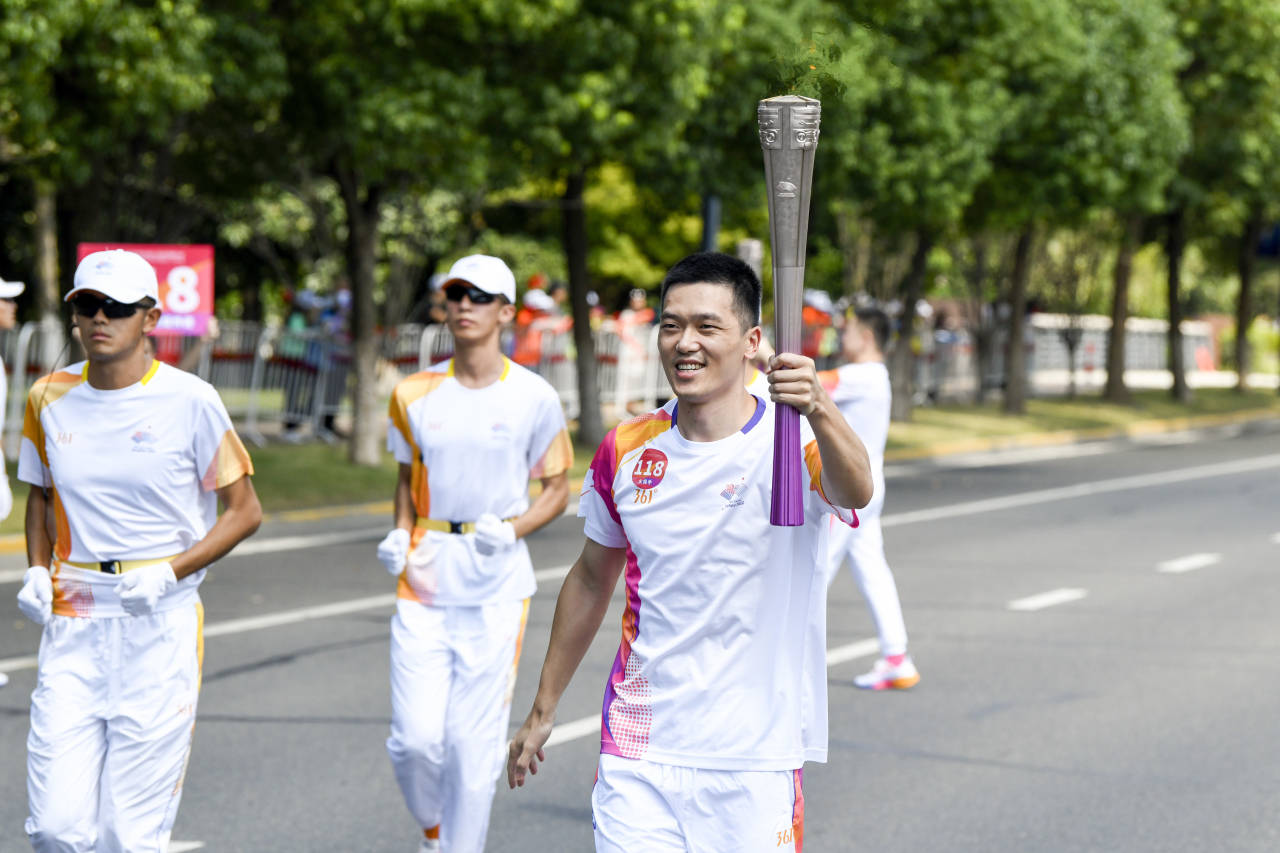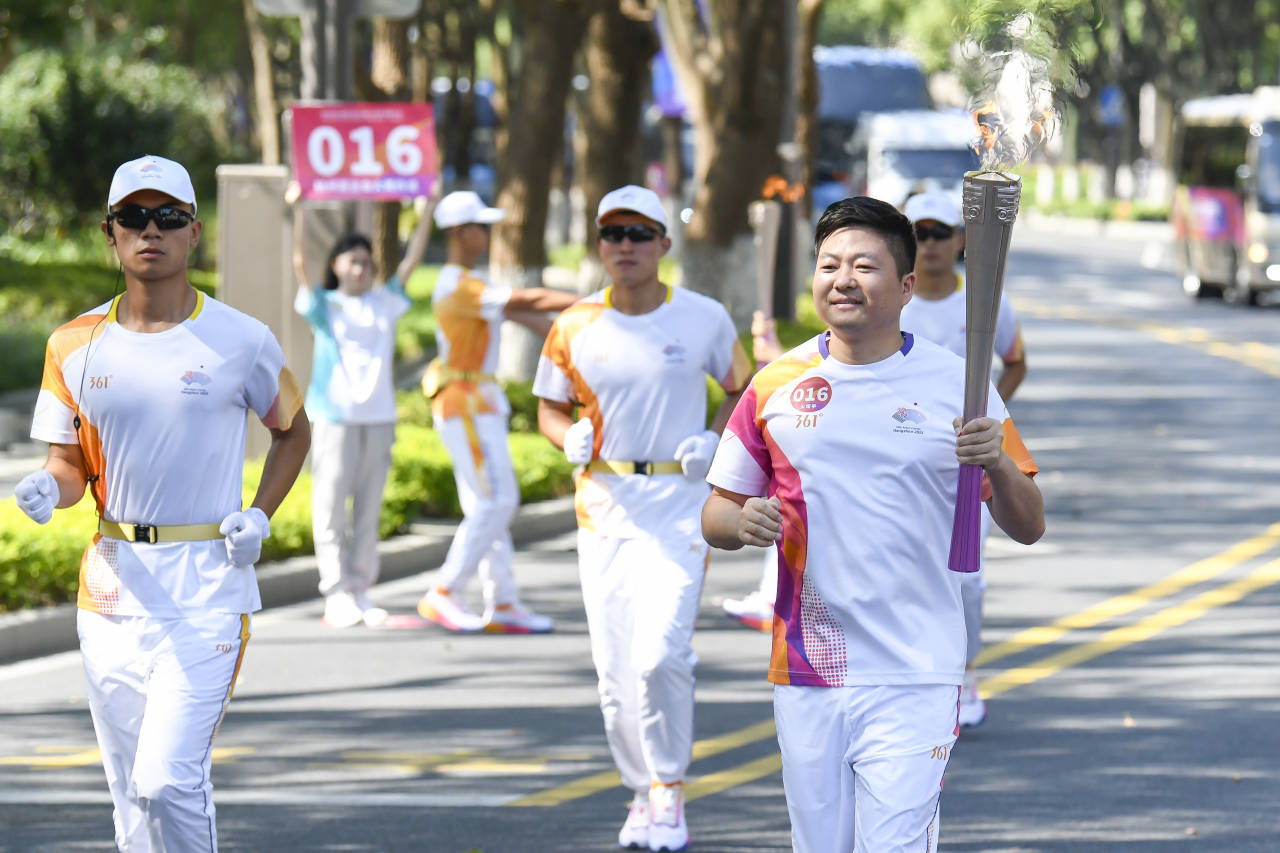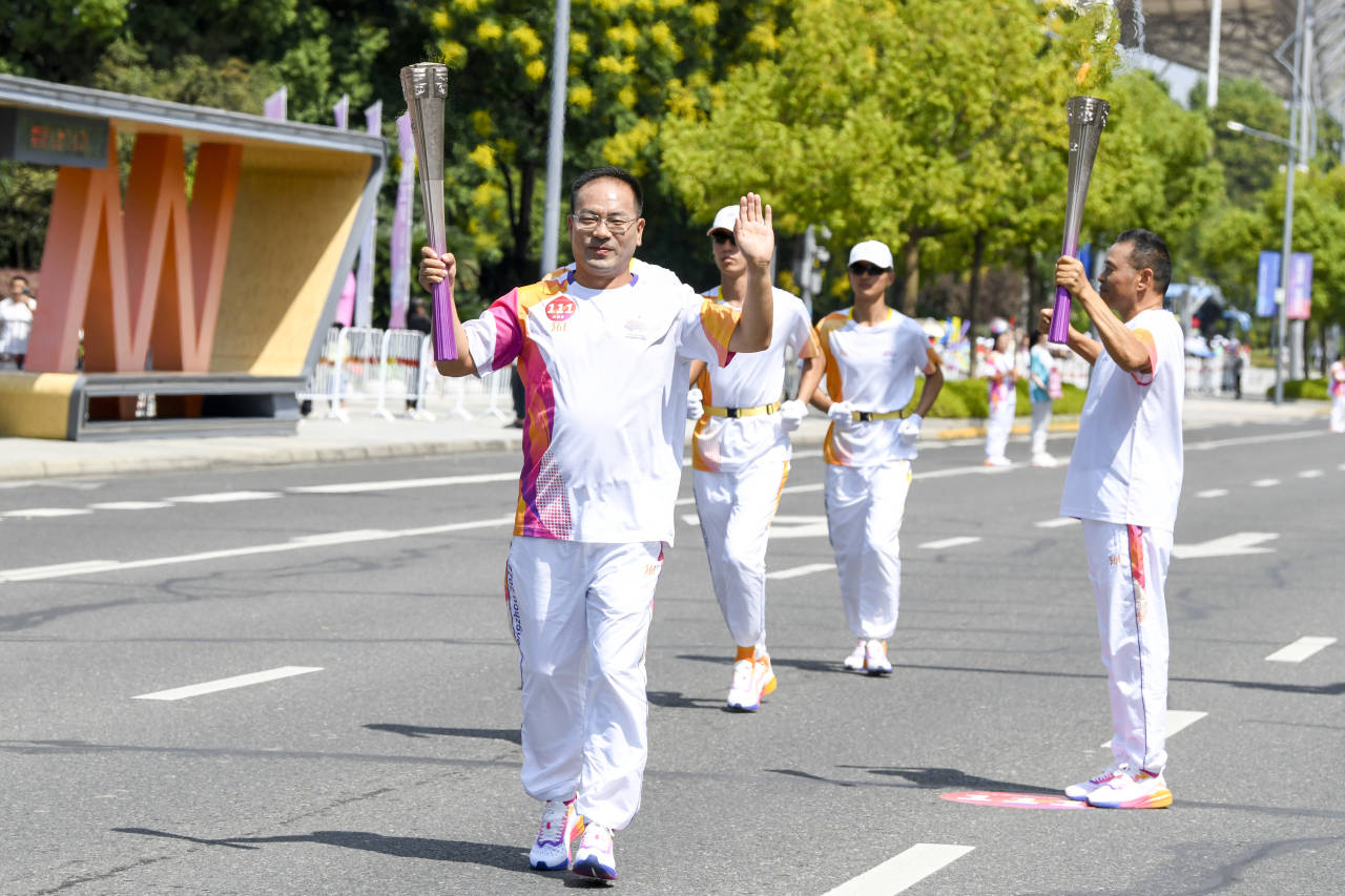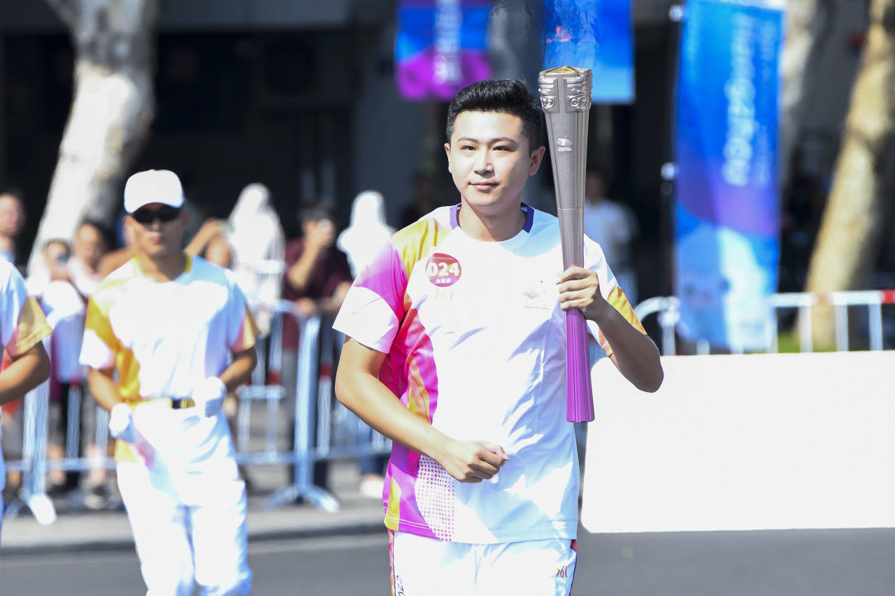 10号火炬手陈日,是中共浙江省委办公厅工作人员代表,他全力以赴做好亚运会、亚残运会前期接待工作,把每个细节做到最优。