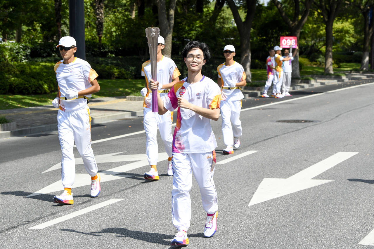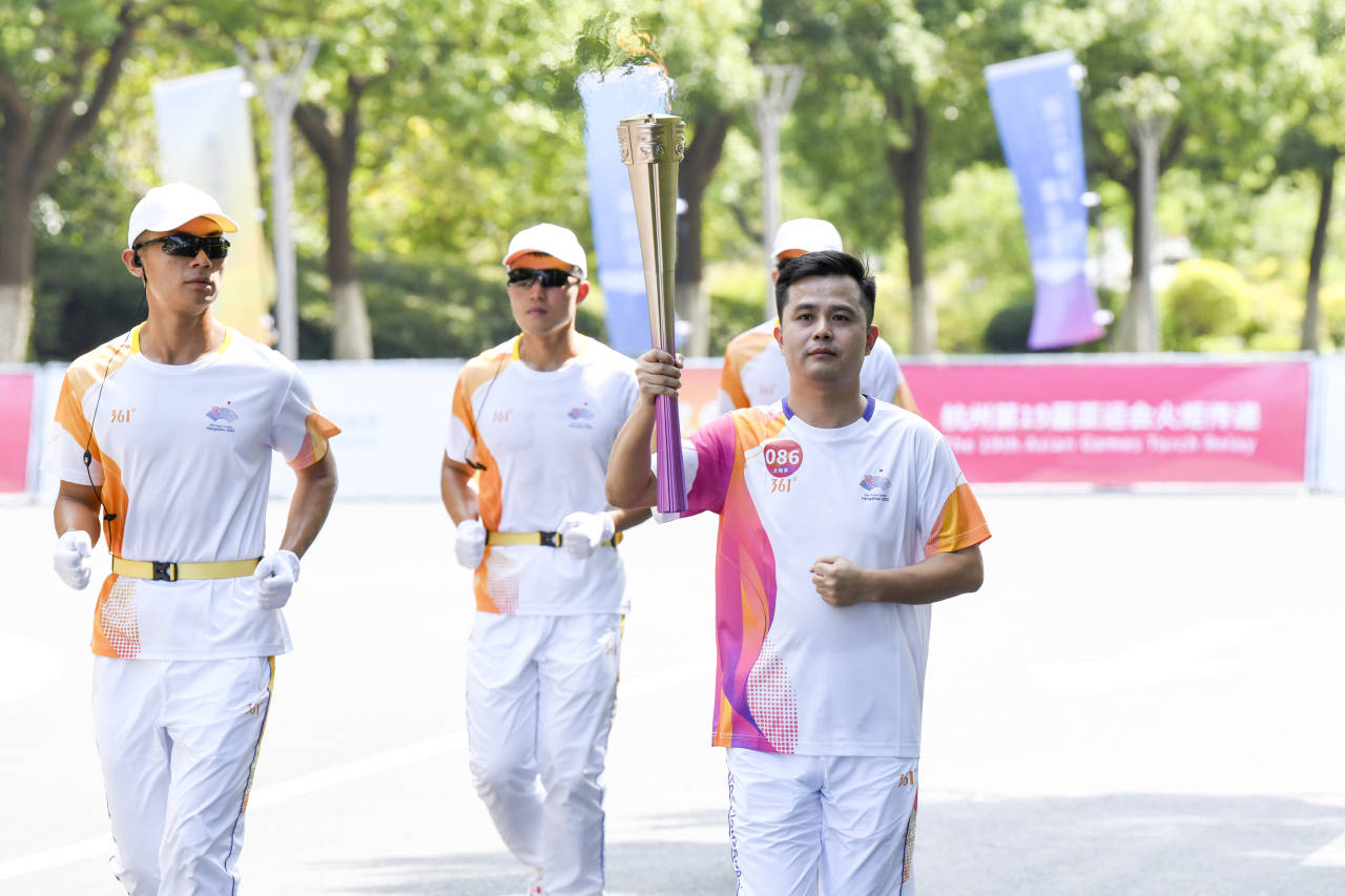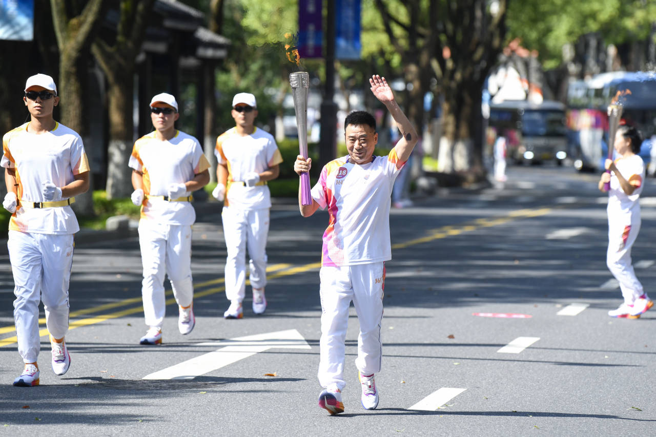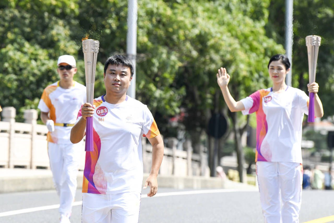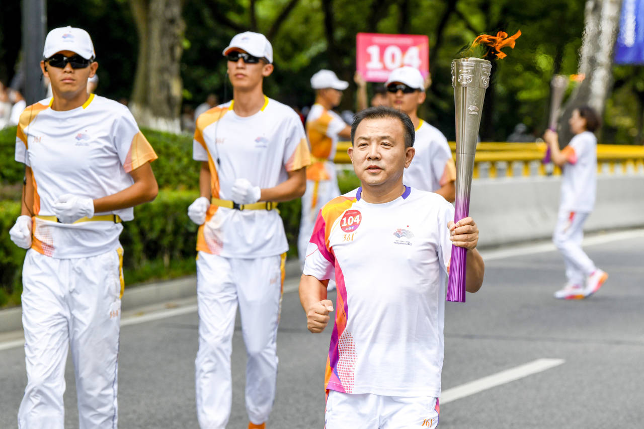 10号火炬手陈日,是中共浙江省委办公厅工作人员代表,他全力以赴做好亚运会、亚残运会前期接待工作,把每个细节做到最优。