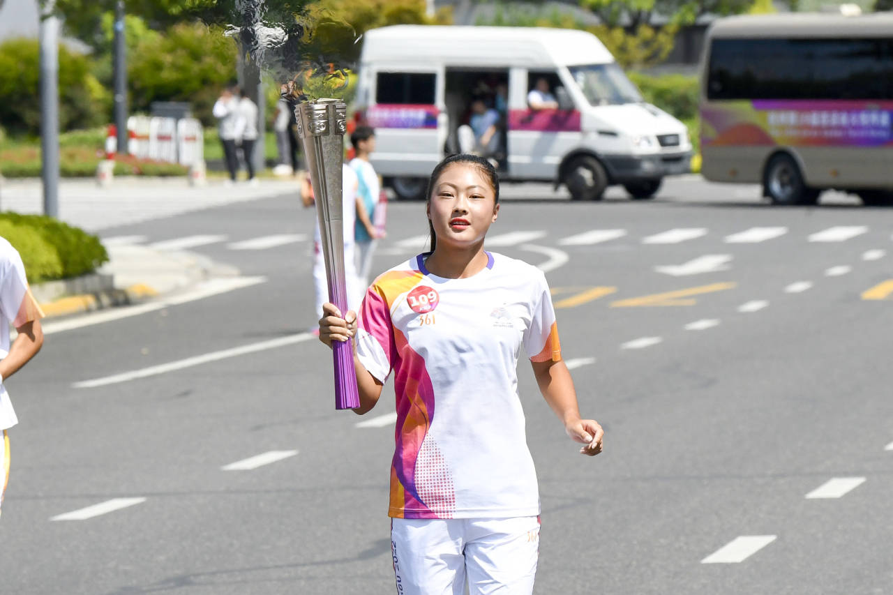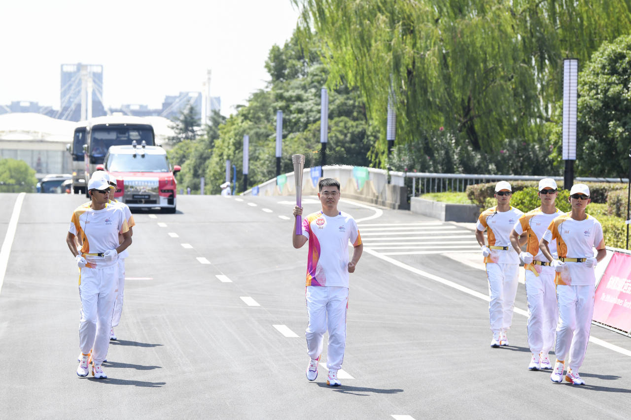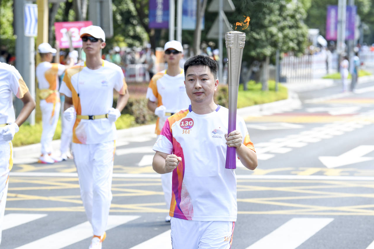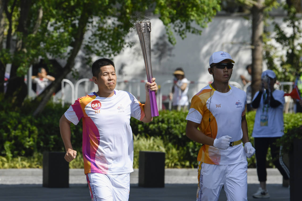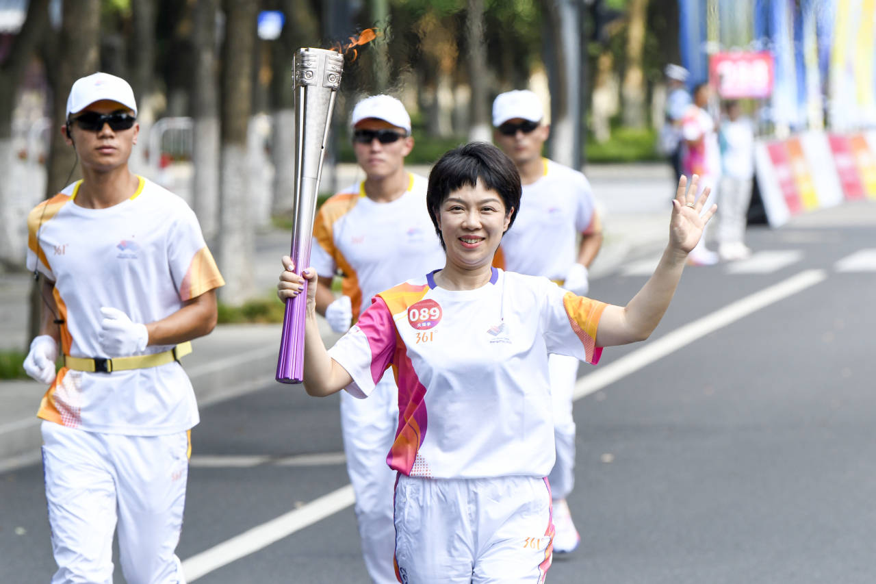 10号火炬手陈日,是中共浙江省委办公厅工作人员代表,他全力以赴做好亚运会、亚残运会前期接待工作,把每个细节做到最优。