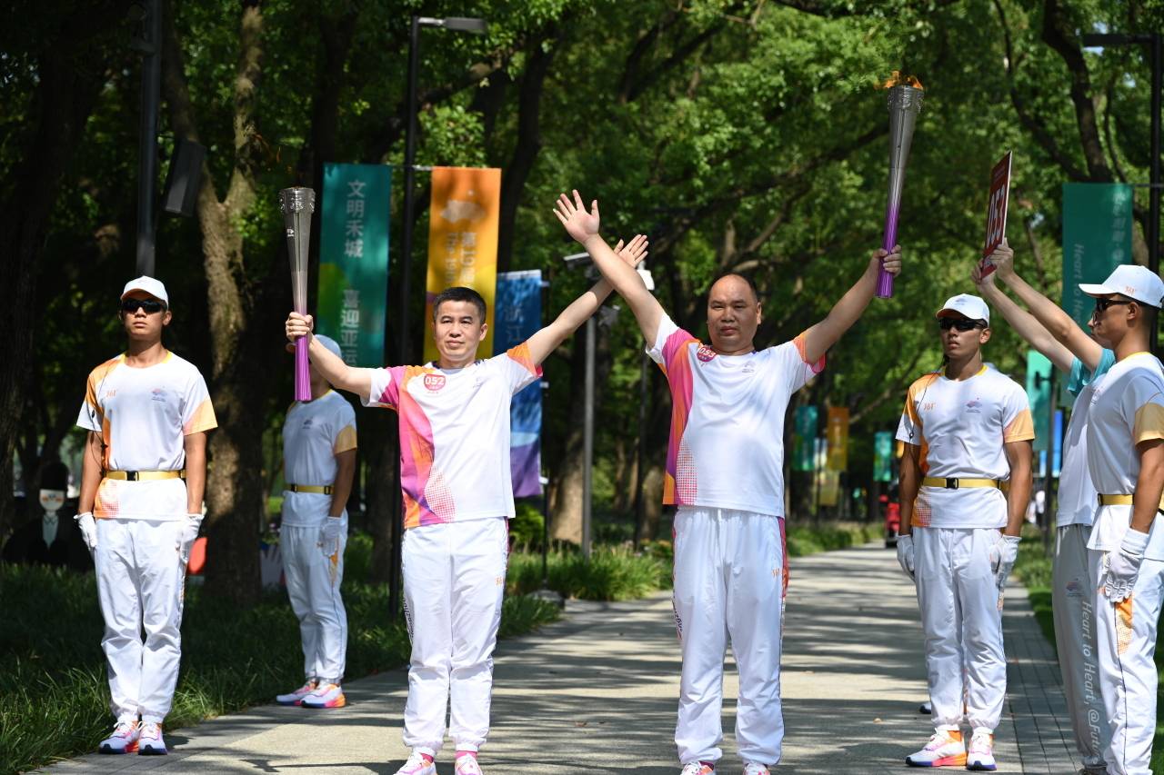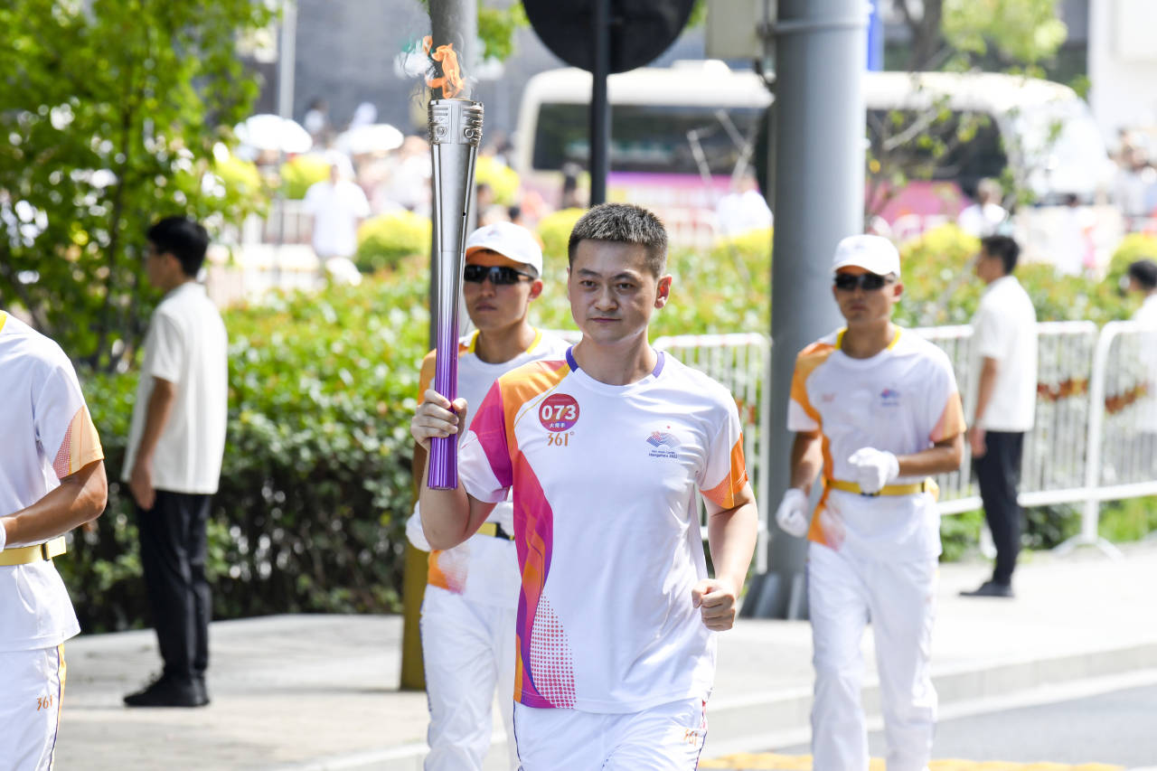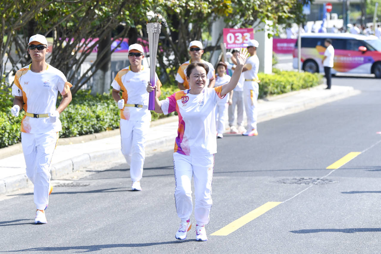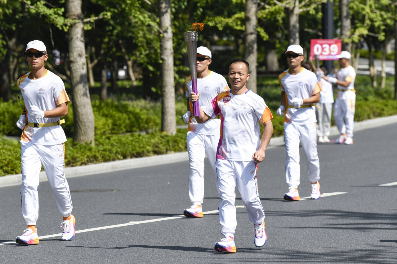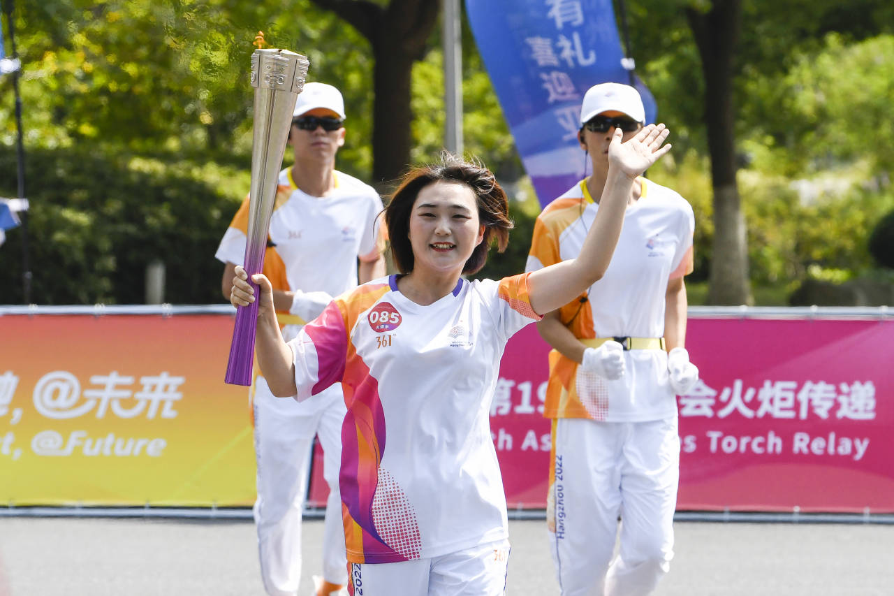 10号火炬手陈日,是中共浙江省委办公厅工作人员代表,他全力以赴做好亚运会、亚残运会前期接待工作,把每个细节做到最优。