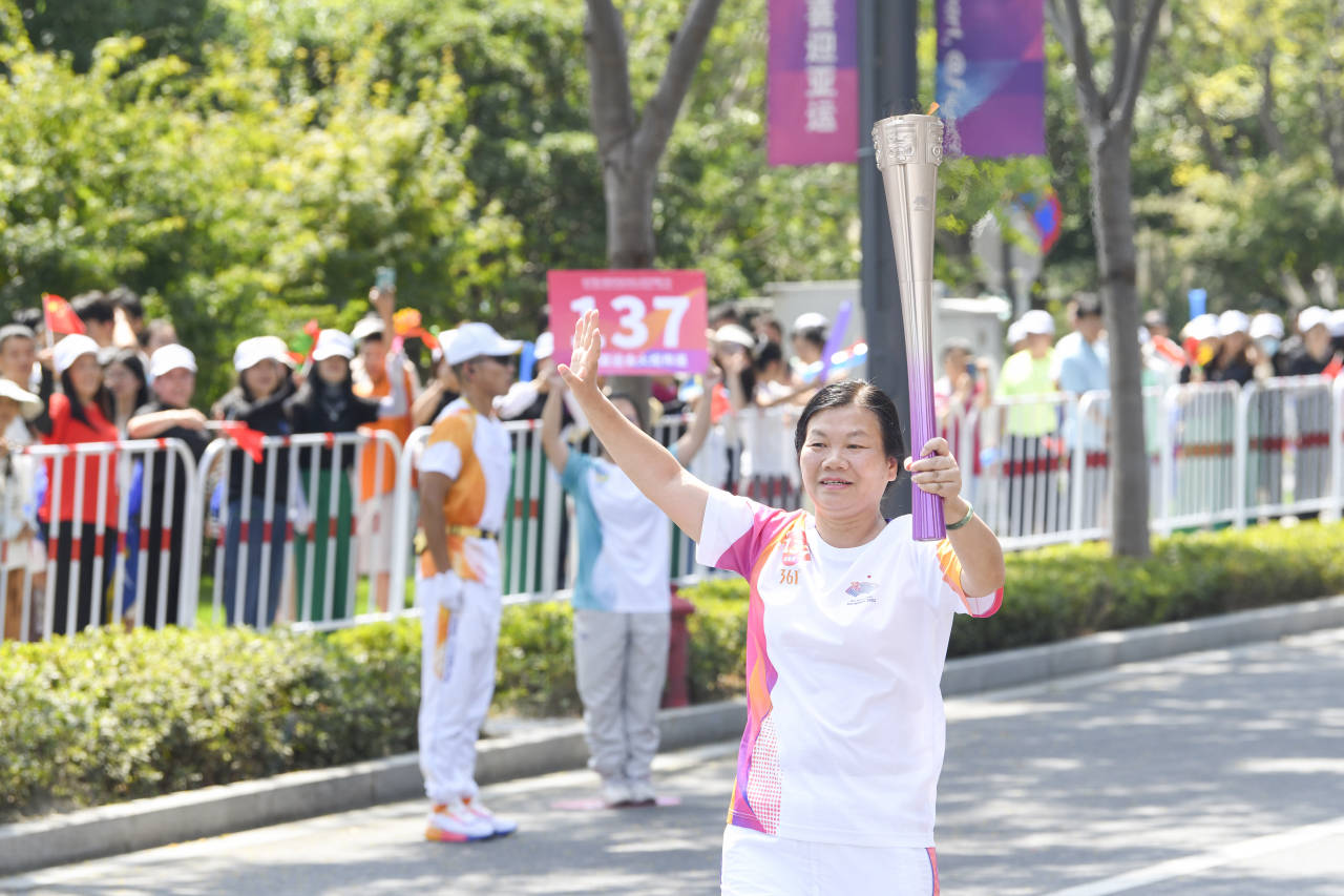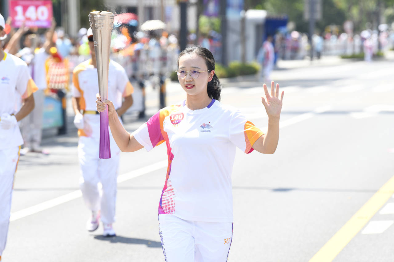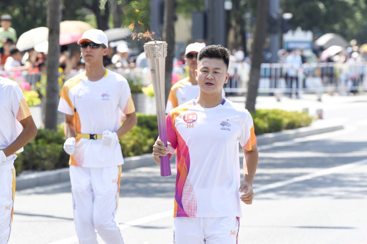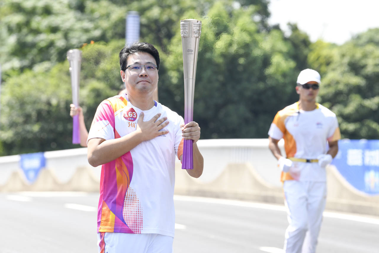 25号火炬手曹俊翔,上海愉趣网络科技有限公司数值策划。他是自行车项目国家三级裁判,也涉猎电子竞技、公路自行车等多个项目,参加过“环法中国赛”等大型赛事。