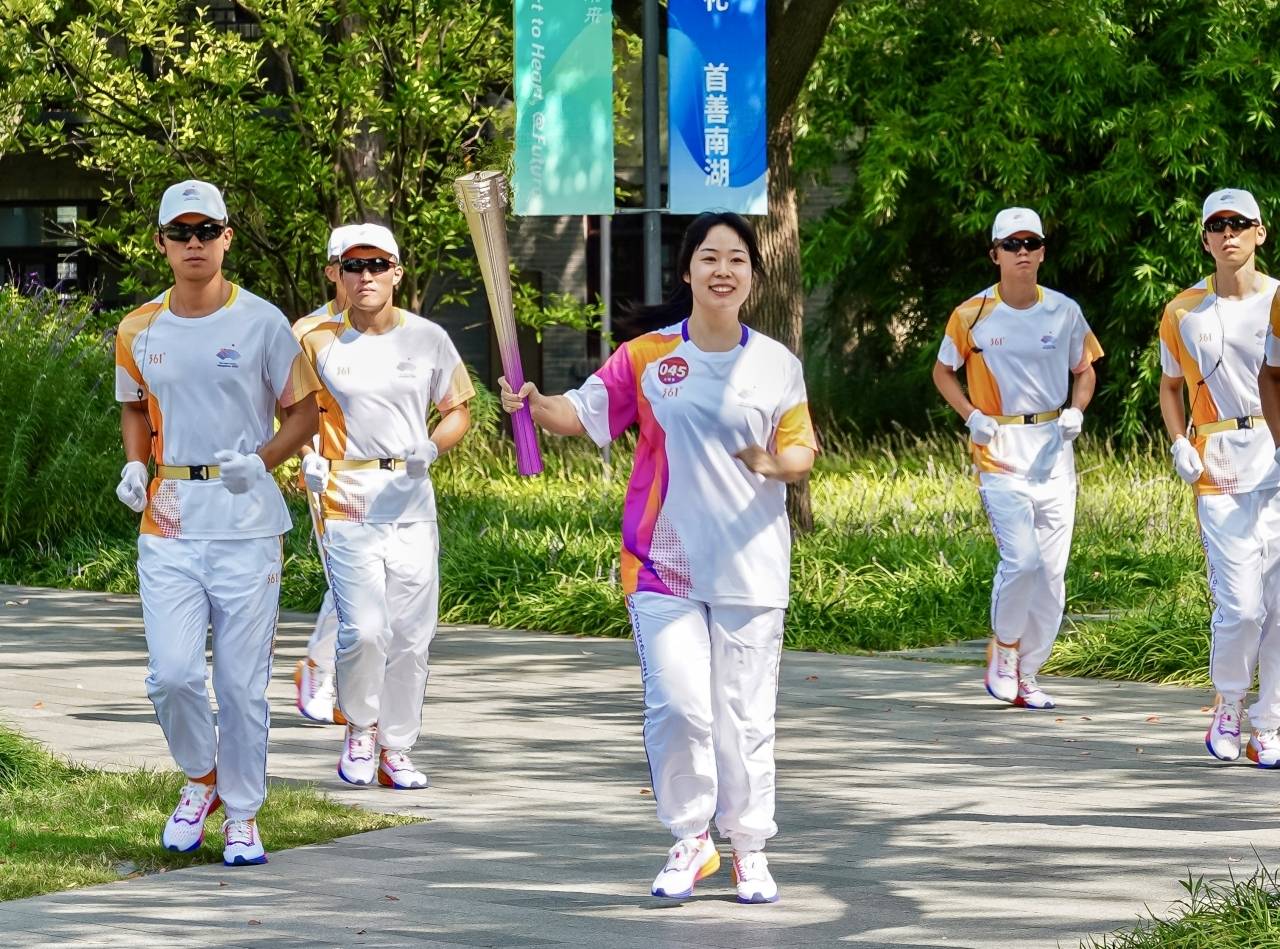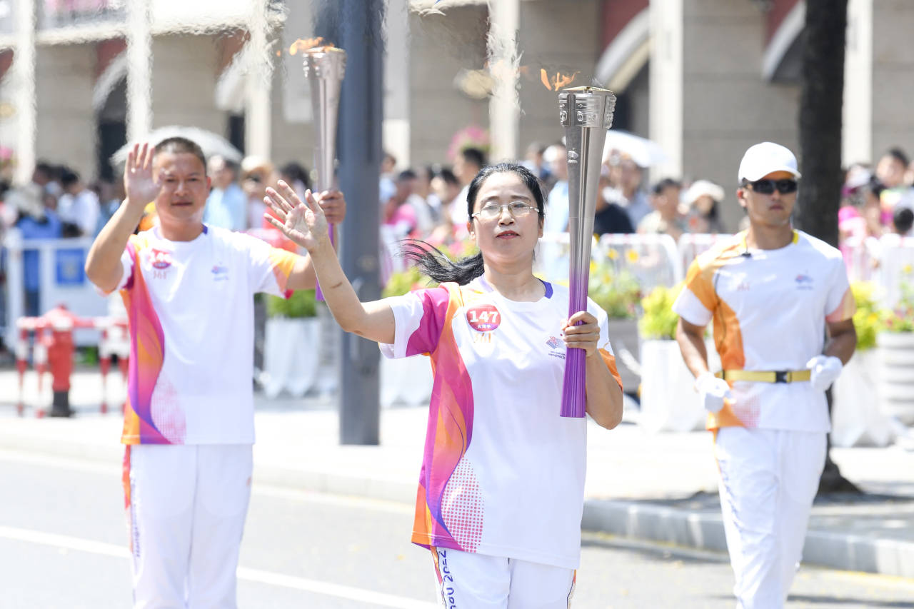 最后一棒火炬手张晓萍,来自嘉兴市实验小学,全国优秀教师。从教30多年,她用心引领学校成为红船旁教育高质量发展的典范学校,所在学校获得中国STEM教育行动计划领航学校、全国群众体育先进单位等30多项荣誉。
