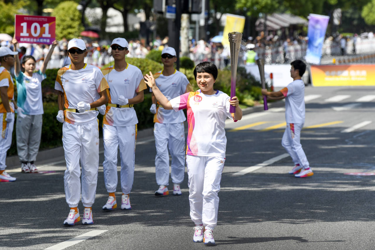 29号火炬手宋晓竞,上世纪90年代开始从事篮球运动裁判工作,是我国唯一获得国际裁判称号的县级篮球裁判员,也是新中国成立后嘉兴地区首位篮球国际级裁判。现抽调在亚组委竞赛部。