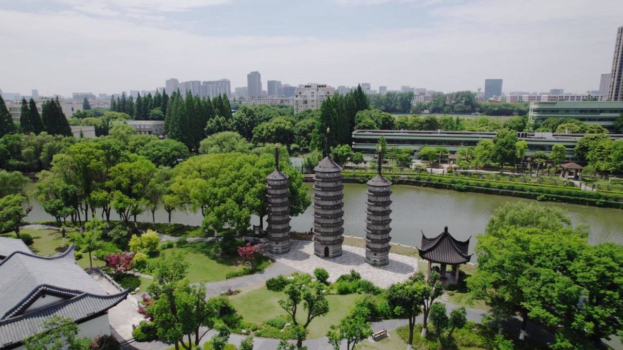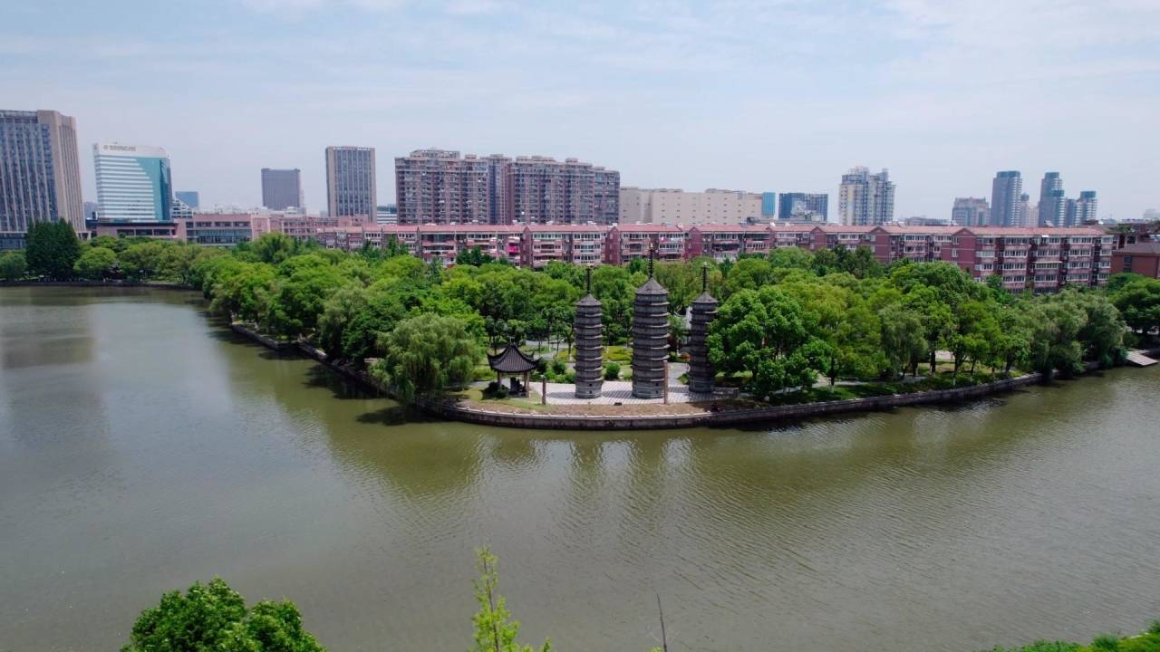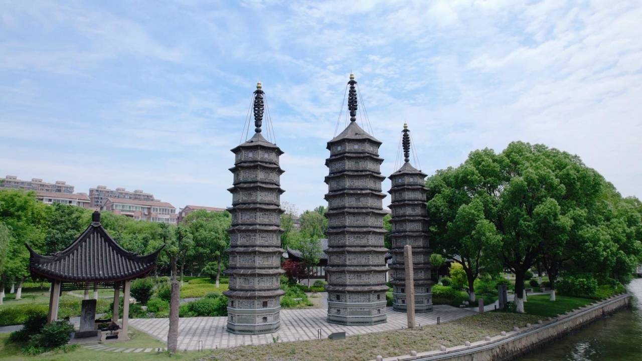 嘉兴三塔位于市区三塔路京杭大运河畔转弯处的三塔公园内,昔日,当船将行至大运河三塔湾河段时,远远便能望见三塔屹立河畔,船工游客此时便知:嘉兴到了!相较“路牌”功能,三塔更大的作用是航标。
