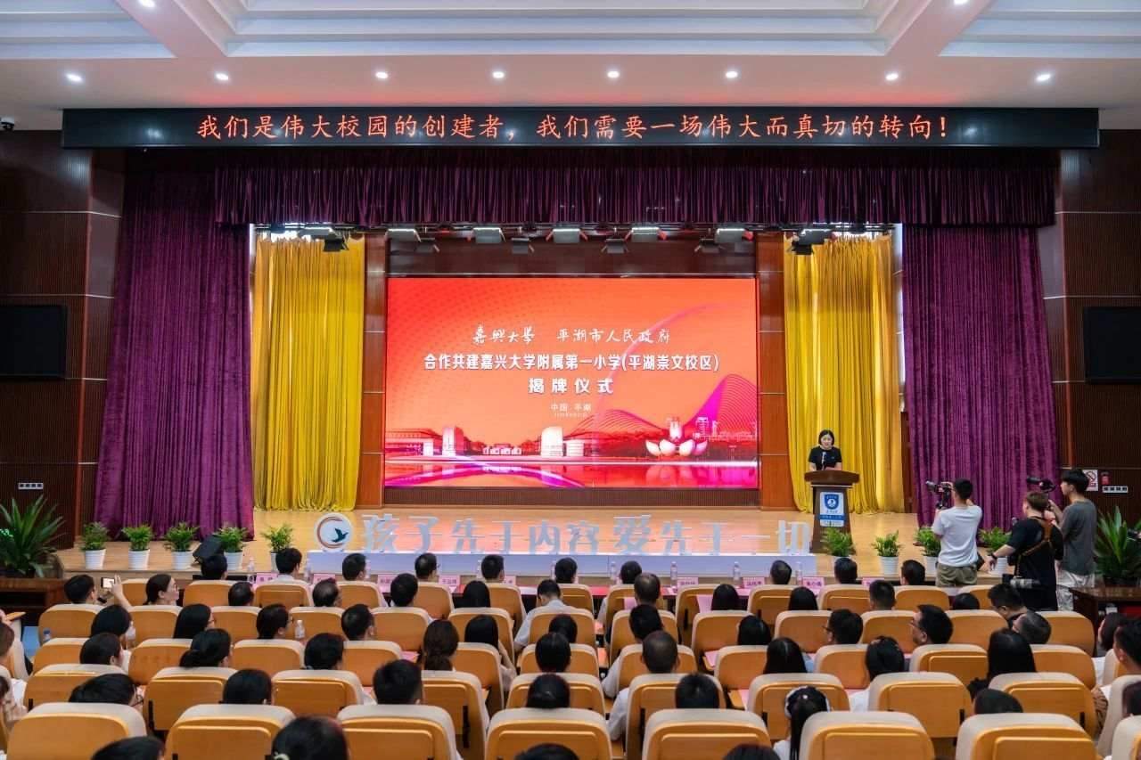 “嘉兴大学附属第一小学(平湖崇文校区)正式揭牌,是校地合作办学的又一重大成果,也是我们办好‘家门口的学校’的重要举措。” 嘉兴大学党委委员、副校长张琦在致辞中表示。