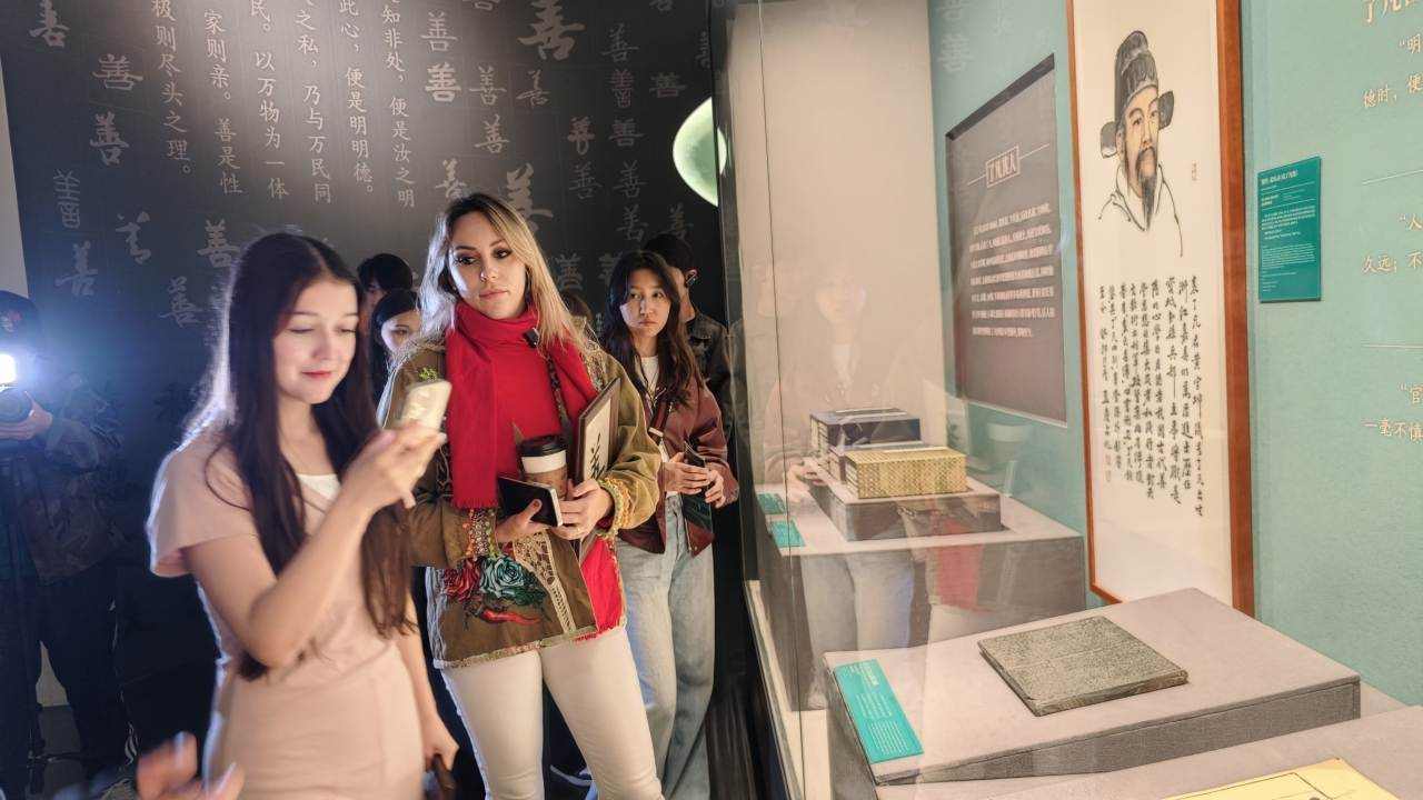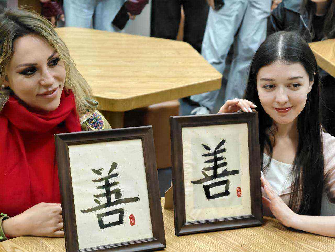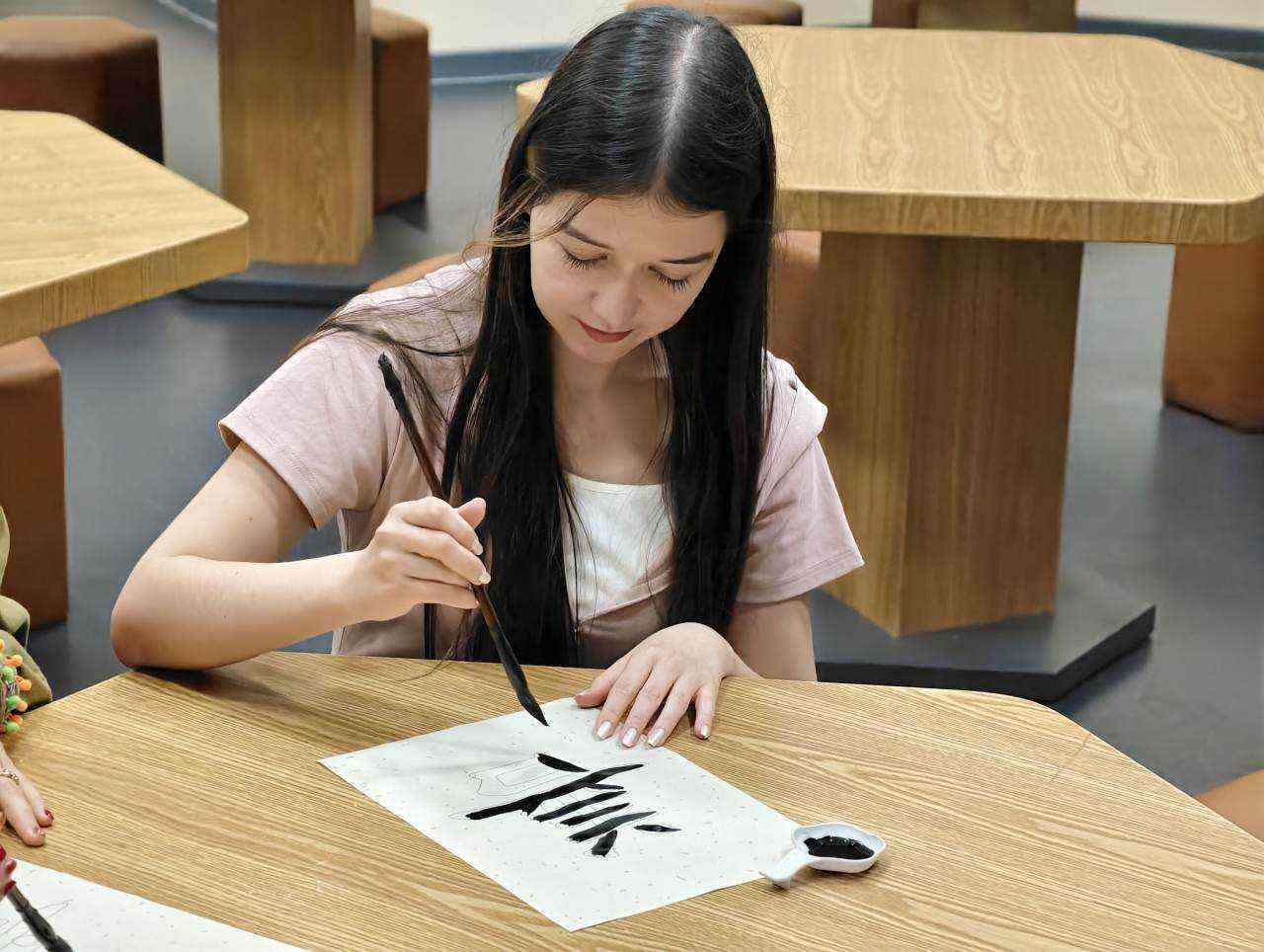 她走进嘉善县博物馆,看到了“东方励志奇书”《了凡四训》,体验了“善文化”书法创作。跟着老师,毛笔蘸满墨汁,在纸上缓缓落下,一笔一画间,一个楷体的“善”字跃然纸上:“中国文化有着数千年历史,这是我第一次用中国毛笔在书画纸上写汉字,真有意思!”