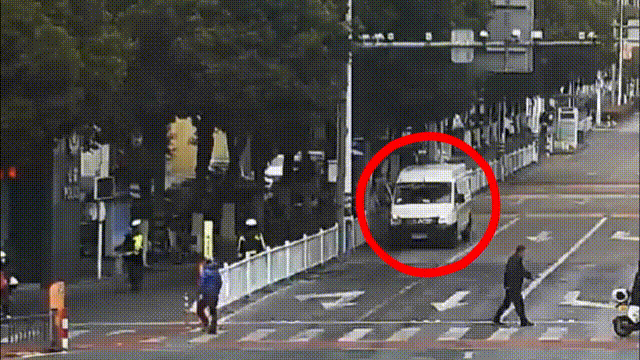 近日晚高峰,在嘉兴港区天妃路外环路口,一辆环卫车突然停下,迟迟未动,正在路口执勤的辅警金佳东随即上前询问情况。
