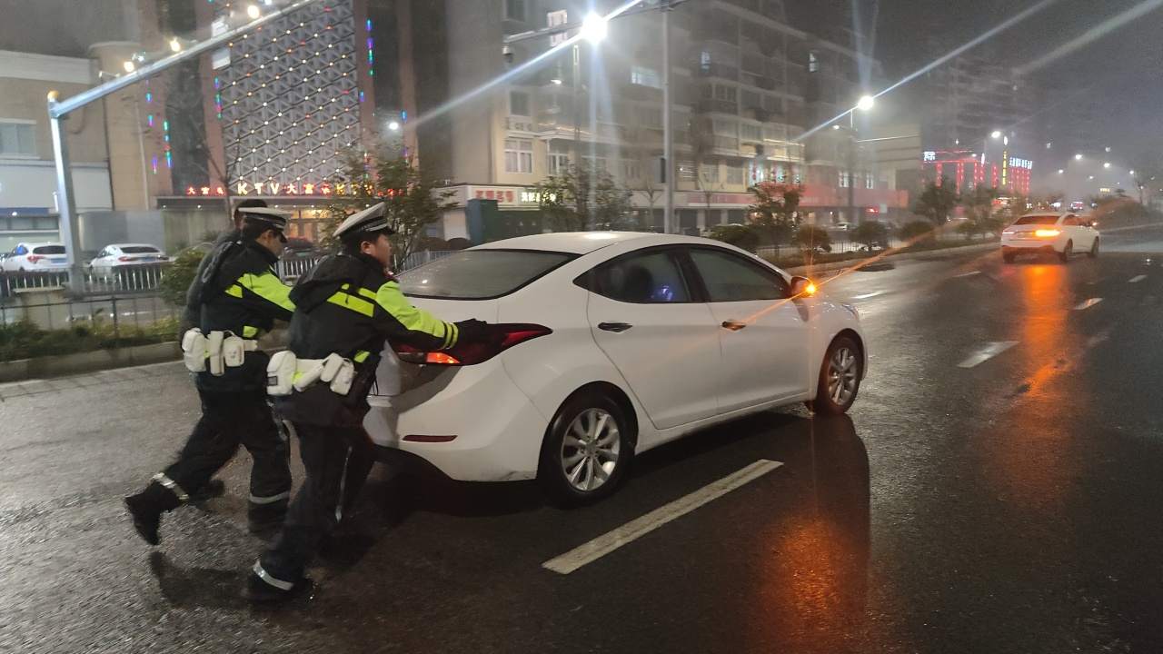 又隔了几天晚上,一辆小轿车因故障停在滨海大道天妃路口车道上,接到指令的辅警黄强、陈虹平、郭磊杰随即赶到现场。经了解,车辆在行驶过程中没油了,车主本想坚持到加油站,结果半路就“趴窝”了。“这附近不远处就有一个加油站,我们合力往那边推。”几人迅速做出反应,连同车主一起将车推至滨海大道附近的加油站。