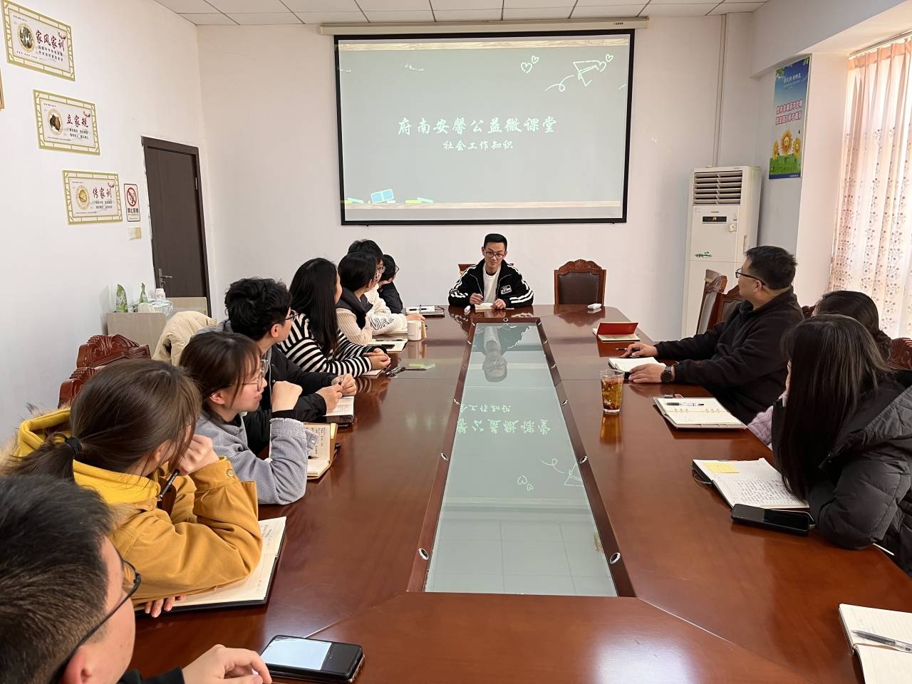 为进一步推进府南社区人才队伍建设,提升专业社会工作者的能力水平和专业技能,充分发挥社会工作者的专业作用,嘉兴经开区长水街道府南社区开展了“府南安馨公益微课堂”系列活动。此次系列活动是指社区干部每月组织集中学习一次,由社区工作者人员轮流主讲,讲课内容围绕自己分管工作,通过备案、讲课,在学中讲、讲中学的方式,实现由“要我学”到“我要学”的思想转变。
