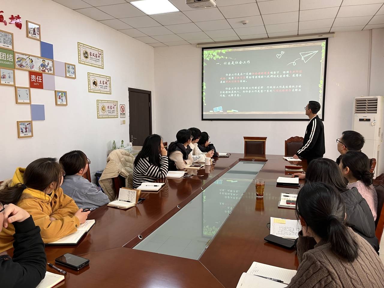 2月27日下午,第一讲首先由帮助大家梳理了今年可能出现的有关社工证考试的考点和热点。紧接着对社区工作的目标、功能和服务对象进行重点分析和讲解,并对相关理论知识进行回顾梳理。随后社区干部分别给大家讲解了团队意识、社区资金使用规范和摄影技巧。