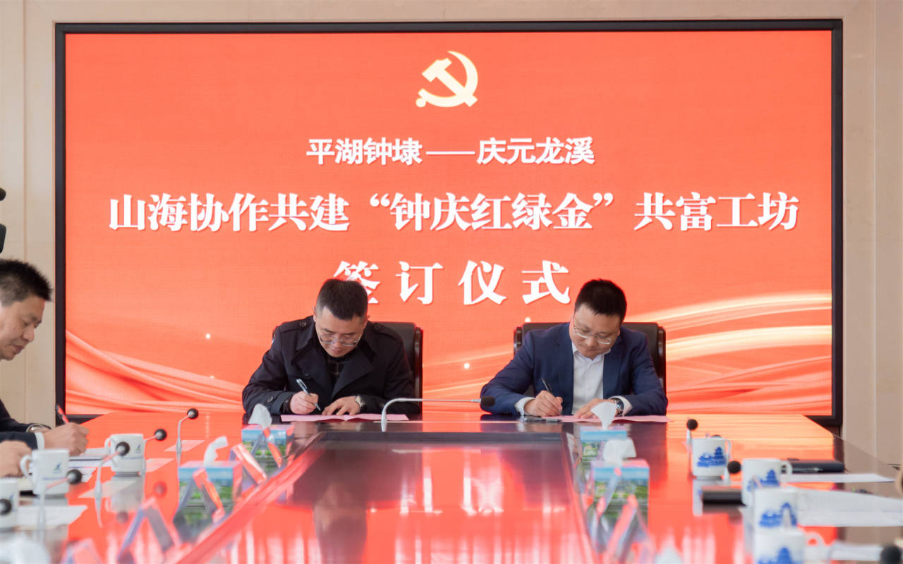 据了解,去年3月,平湖钟埭——庆元龙溪山海协作共同富裕战略合作协议签订,一年来,两地围绕党建联建,在经济发展、社会治理、民生服务等领域进行了广泛深入合作。在钟埭樱花小镇升级打造的庆元县龙溪乡驻嘉平党群服务驿站,实现了庆元新居民从“融入”到“融合”的转变。在山海协作21周年之际,钟埭与龙溪再续党建缘,签订《山海协作共建“钟庆红绿金”共富工坊框架协议》,在共同富裕的路上创造更多“经开经验”和“龙溪实践”。