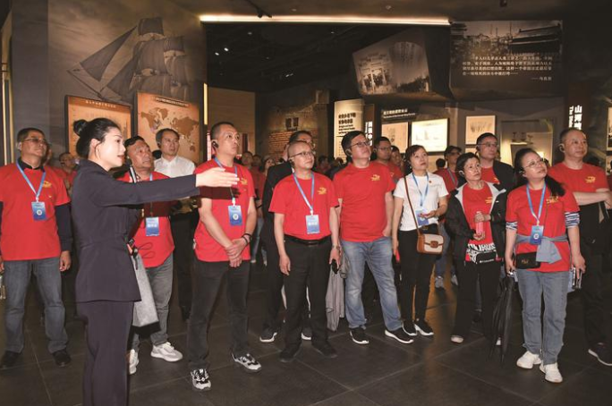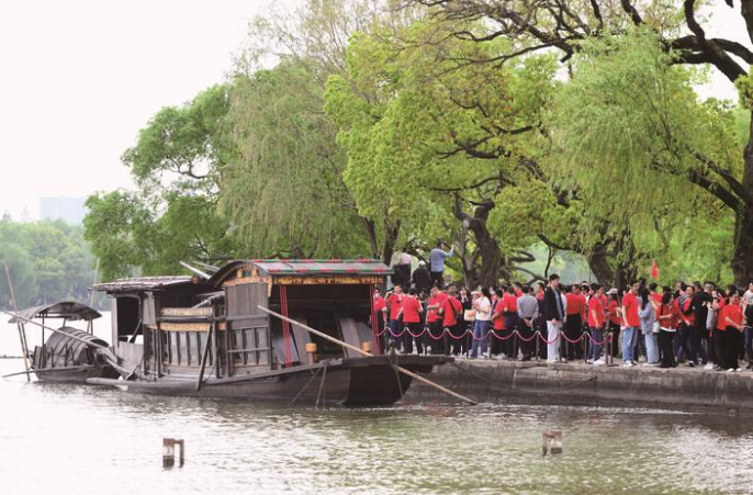 昨天下午,参加2023年全国报纸自办发行协会年会的百余家媒体单位的社长、总编来到南湖瞻仰红船、参观南湖革命纪念馆、聆听党课。