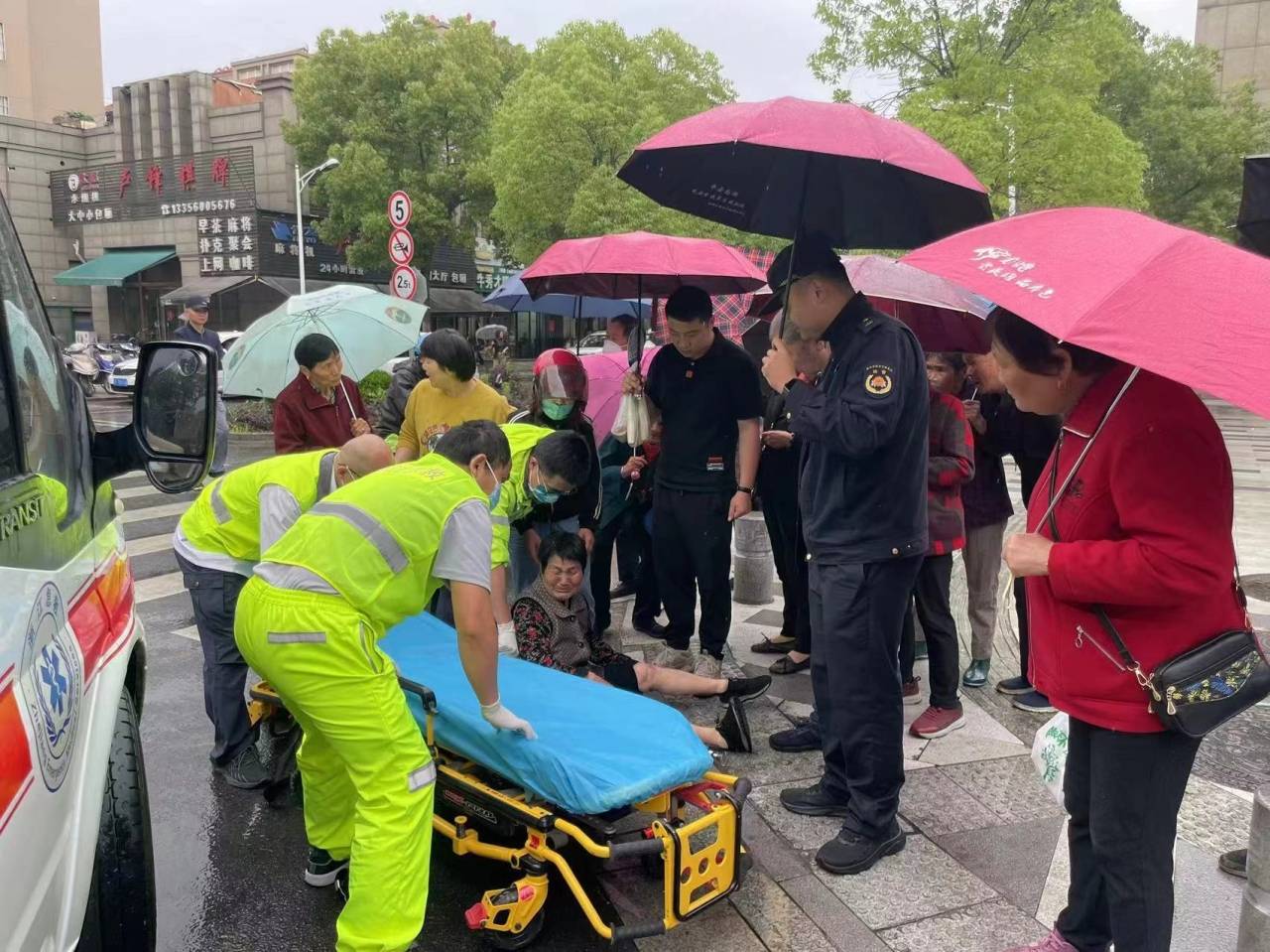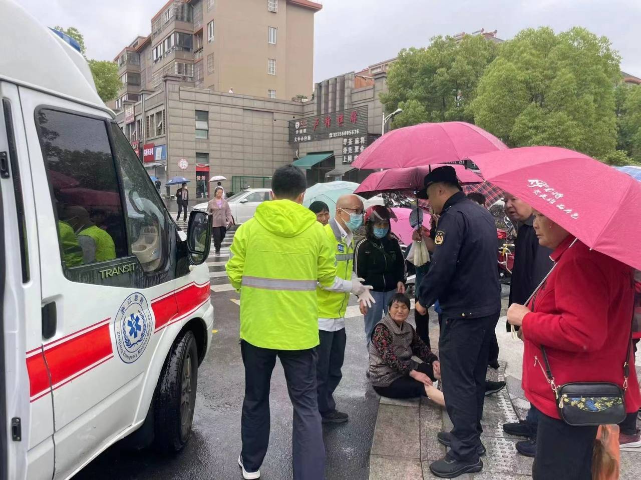 “谢谢你们救了我妈妈,她的年龄大了,又喜欢来逛菜市场,今天又在下雨就摔倒了,还好你们发现的及时。”老人的子女感谢道。