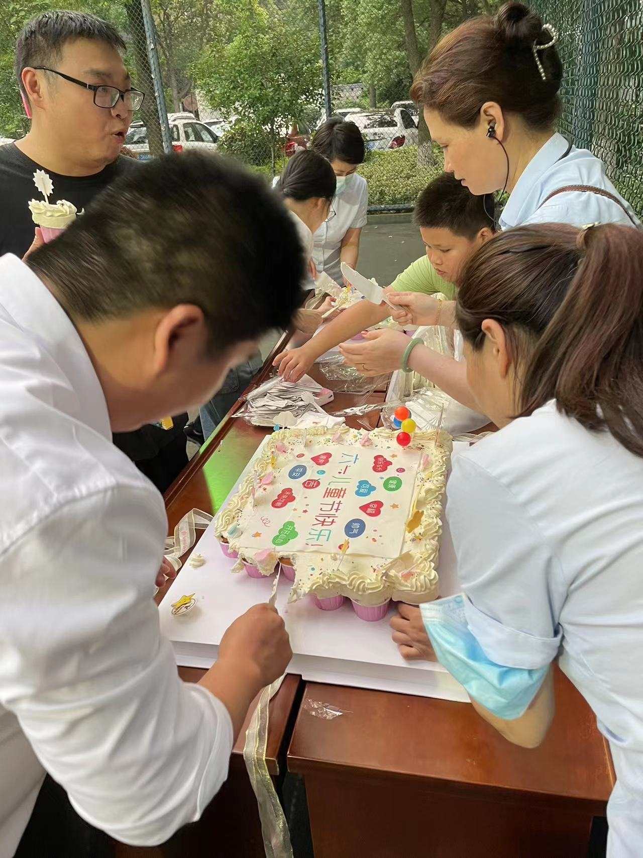 活动尾声,社区和物业负责人给到场所有孩子分发百人蛋糕,寄语他们能互助共享、茁壮成长。甜蜜蜜的奶油化作笑容浮在每个孩子脸蛋上,也融进工作人员的心。