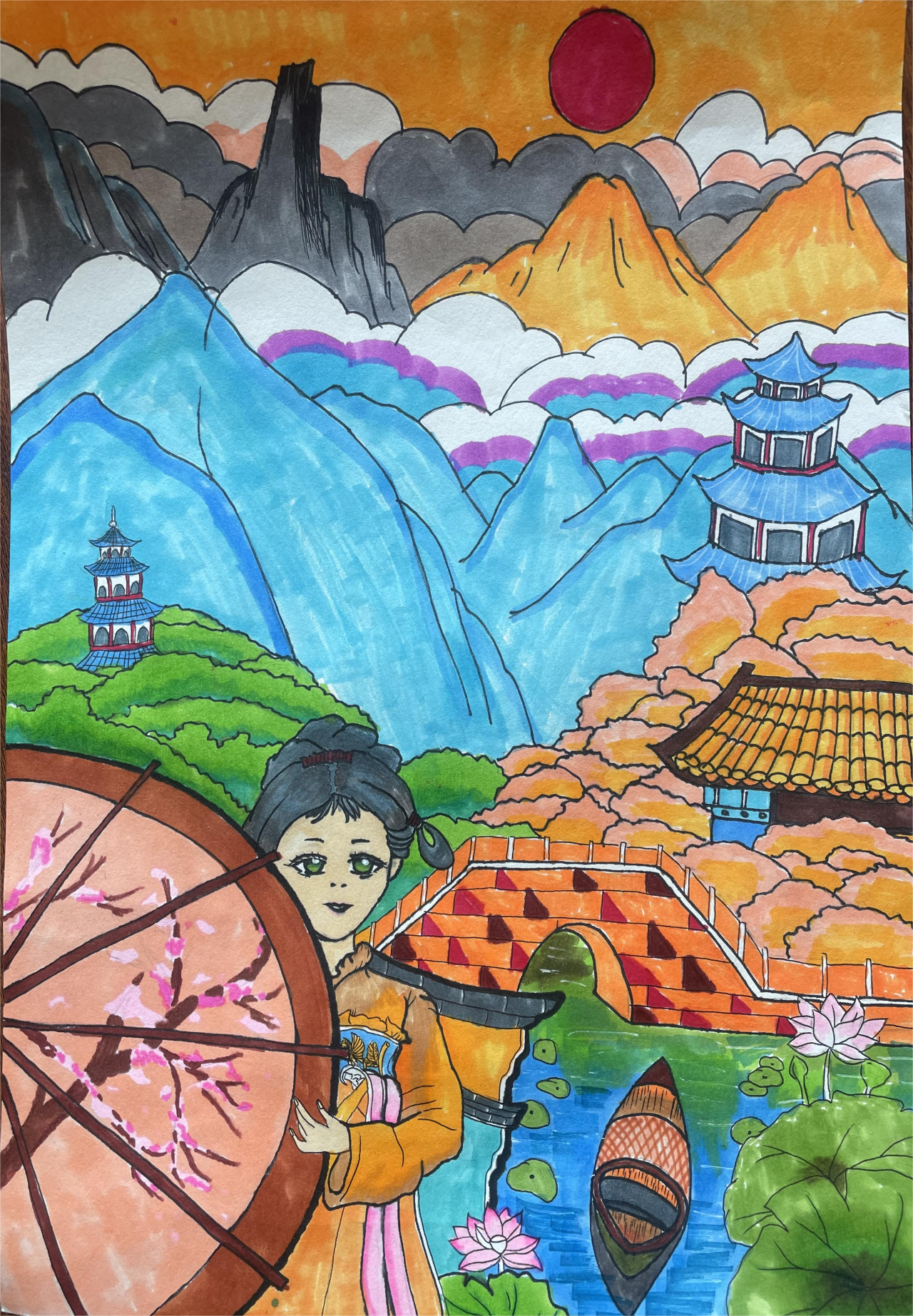 雨过天晴,太阳出来了,小草在微笑,树叶在风中摇曳,好似还哼着那美妙的摇篮曲。歌声在空中轻轻地回荡,久久不散。