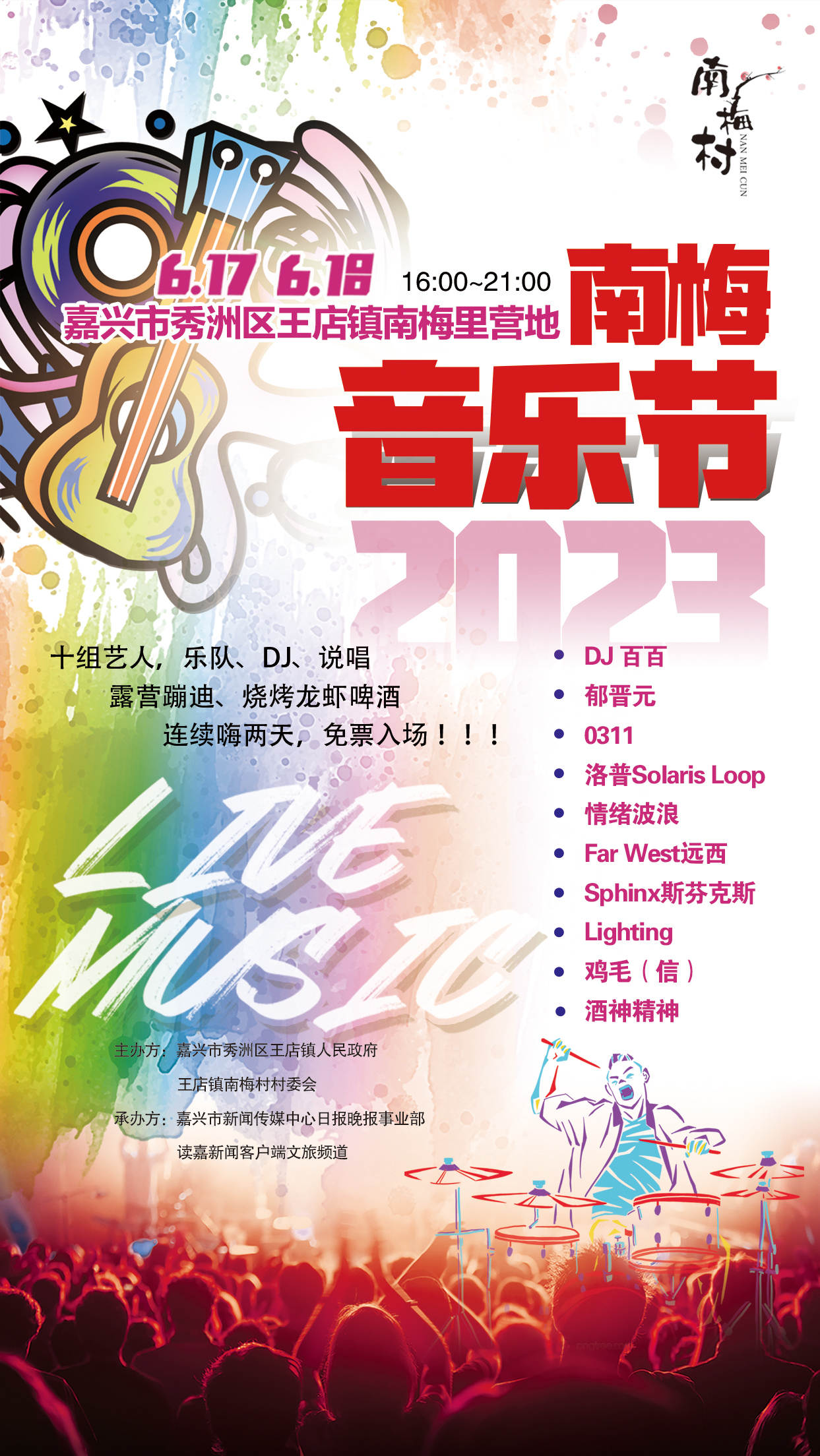 6月17日、6月18日,由嘉兴市秀洲区王店镇人民政府、王店镇南梅村村委会主办,嘉兴市新闻传媒中心日报晚报事业部、读嘉新闻客户端文旅频道承办的南梅音乐节即将在王店镇南梅里营地热辣开场。