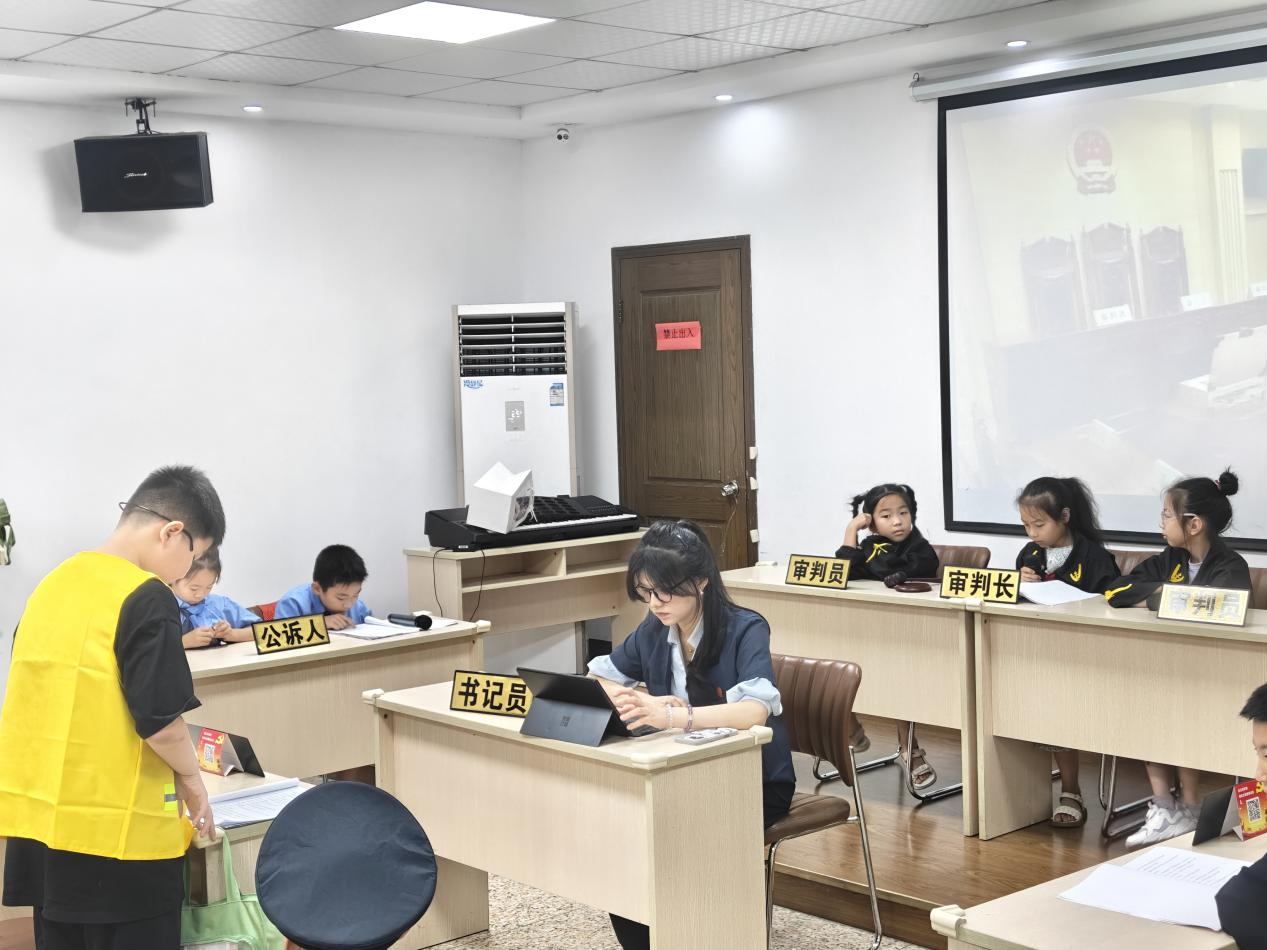 2025年,“七彩虹桥·爱心假日社”在十年积淀基础上锐意创新,推出“职业认知成长图鉴”计划,将职业启蒙与素质教育深度融合。“小小银行家”课程携手社区农商行,通过模拟存取款操作、趣味理财游戏等形式,让抽象的金融知识变得生动可感。“小小律师”课程联动子城律师事务所,创新开设模拟法庭课程。从贴近生活的校园纠纷案例切入,引导儿童学习自我保护知识,让冰冷的法条在情境体验中转化为守护成长的坚实“铠甲”。