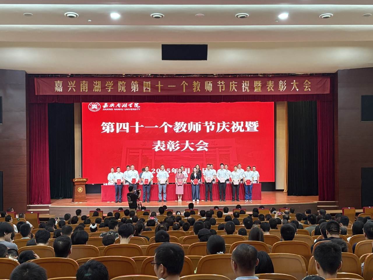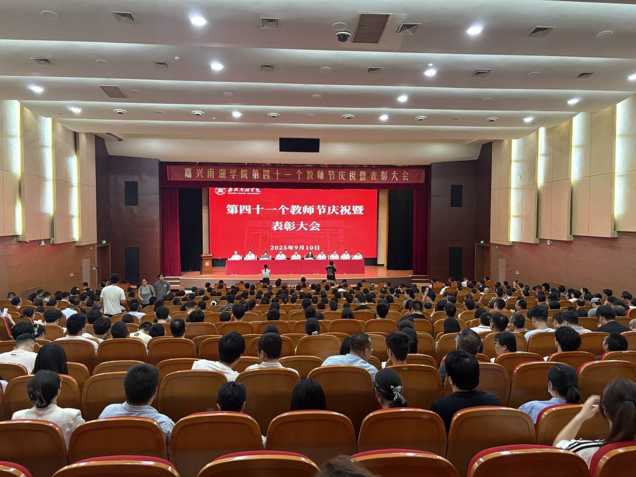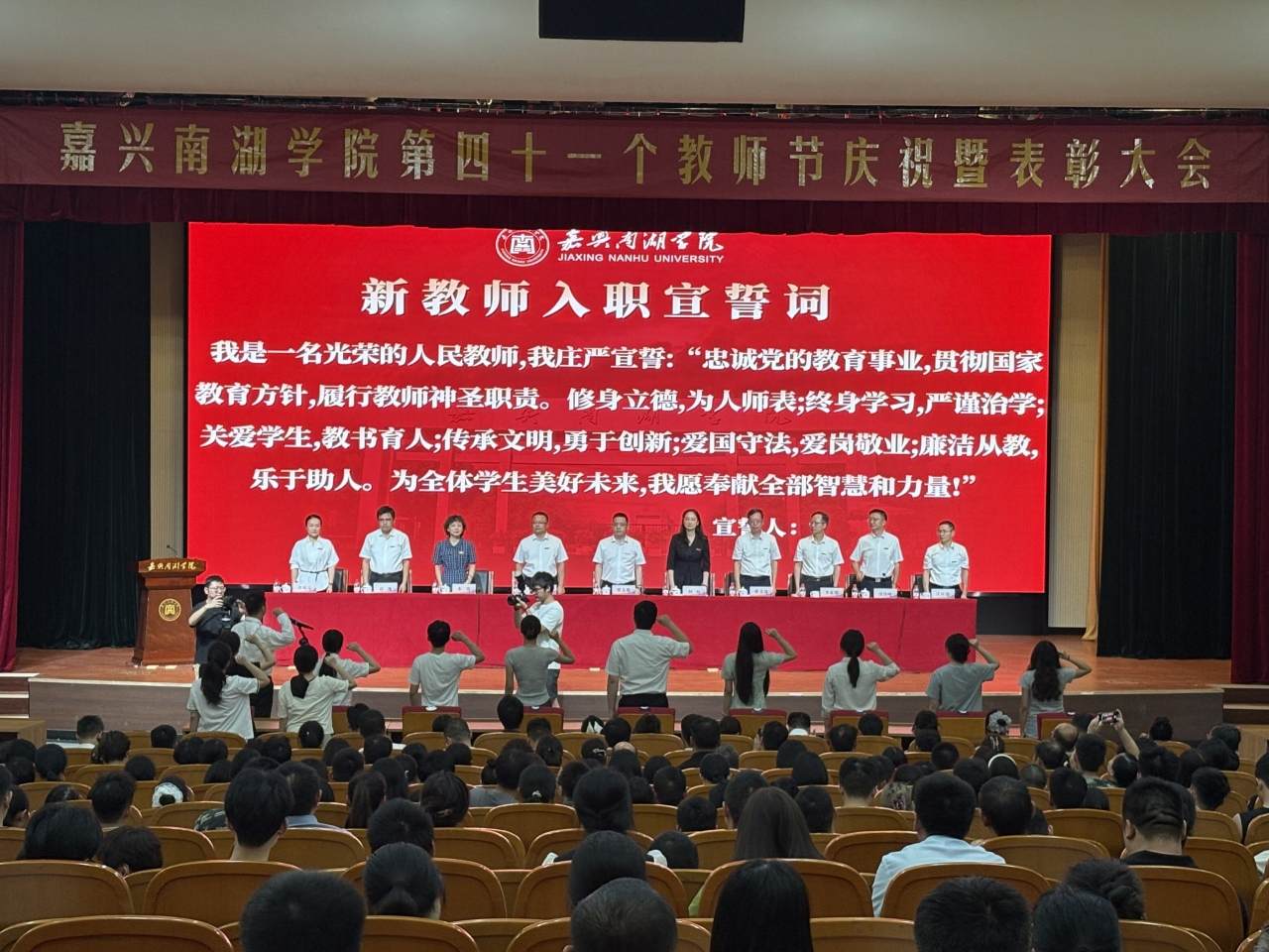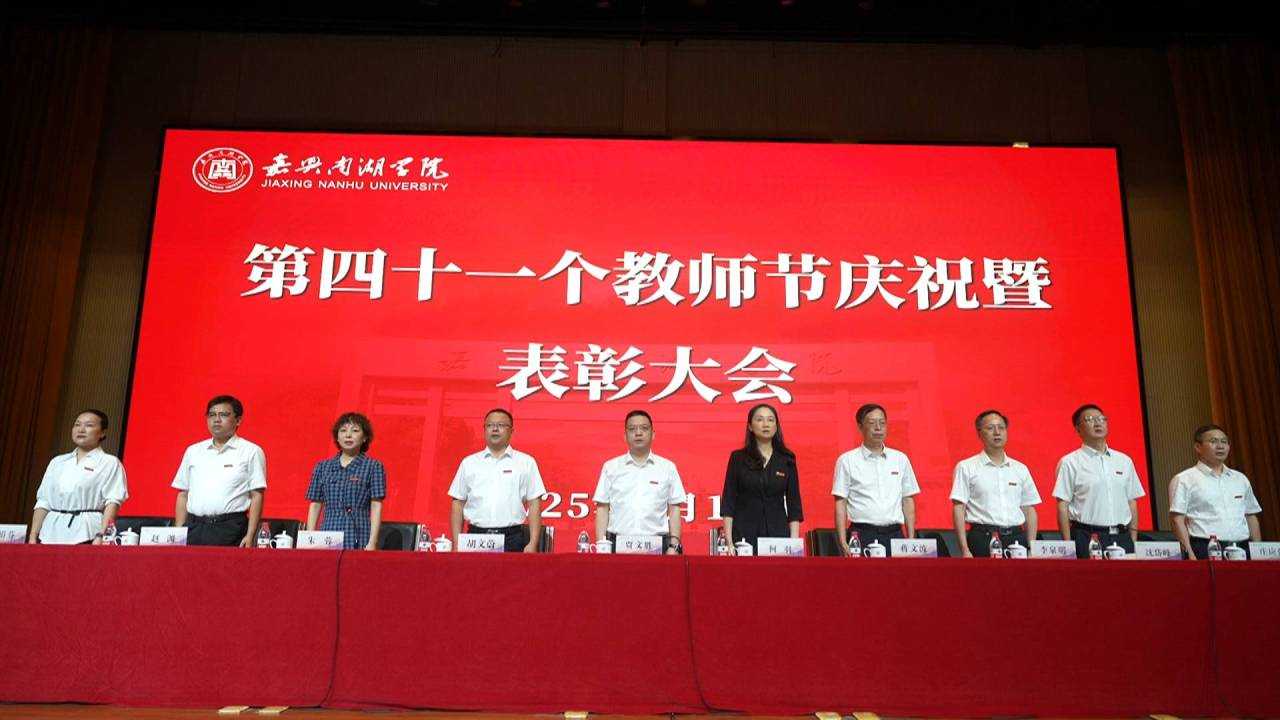 今天(9 月10日)下午,嘉兴南湖学院举行第 41 个教师节庆祝大会暨优秀教职工表彰活动,集中表彰为学校发展作出突出贡献的教职工,凝聚教师队伍发展共识,为学校高质量发展注入新动能。在家校领导班子、全体教职工及学生代表参会。